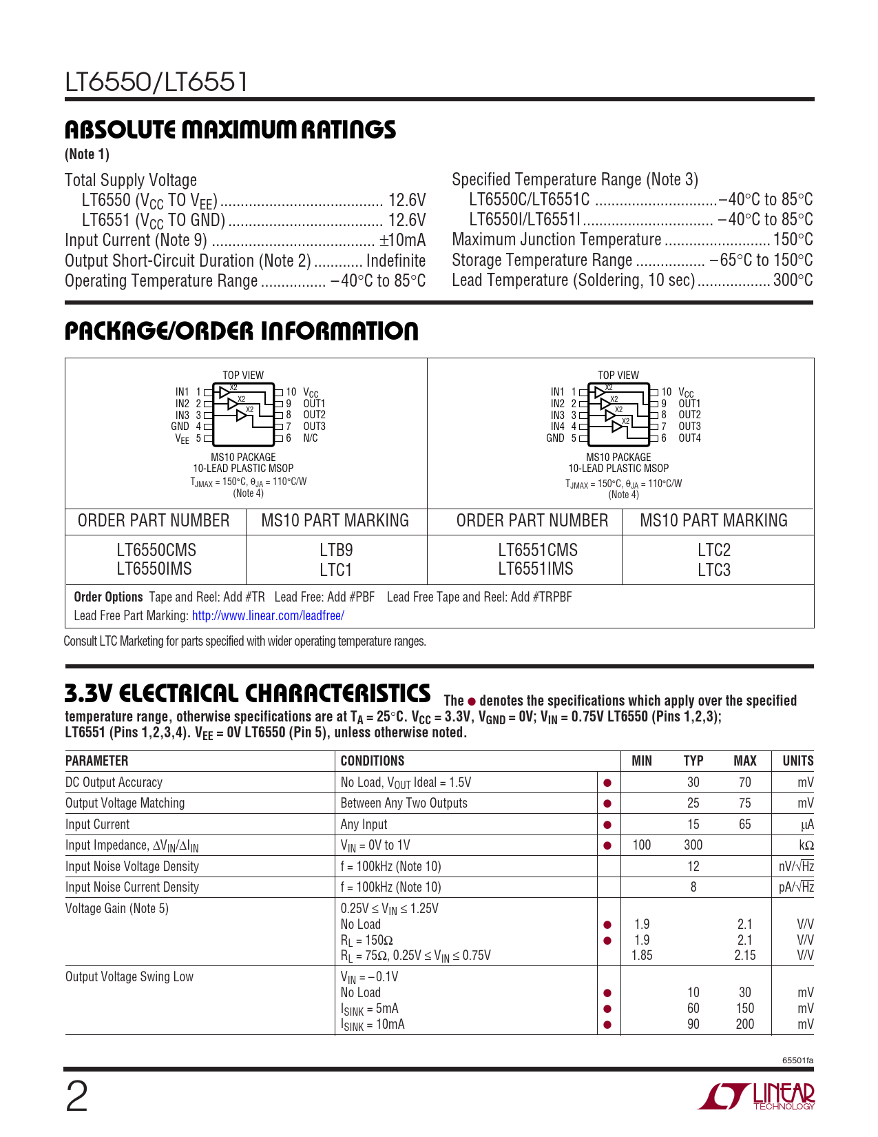 Datasheet LT6550, LT6551 (Analog Devices) - 2