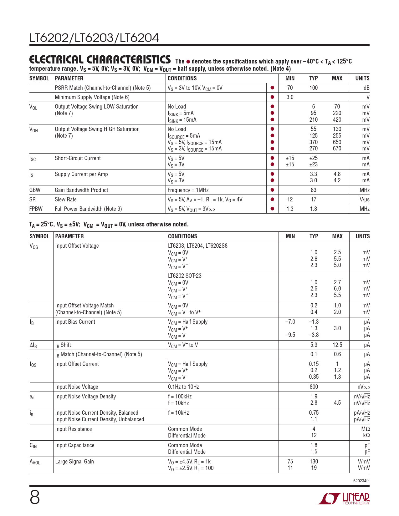 Datasheet LT6202, LT6203, LT6204 (Analog Devices) - 8
