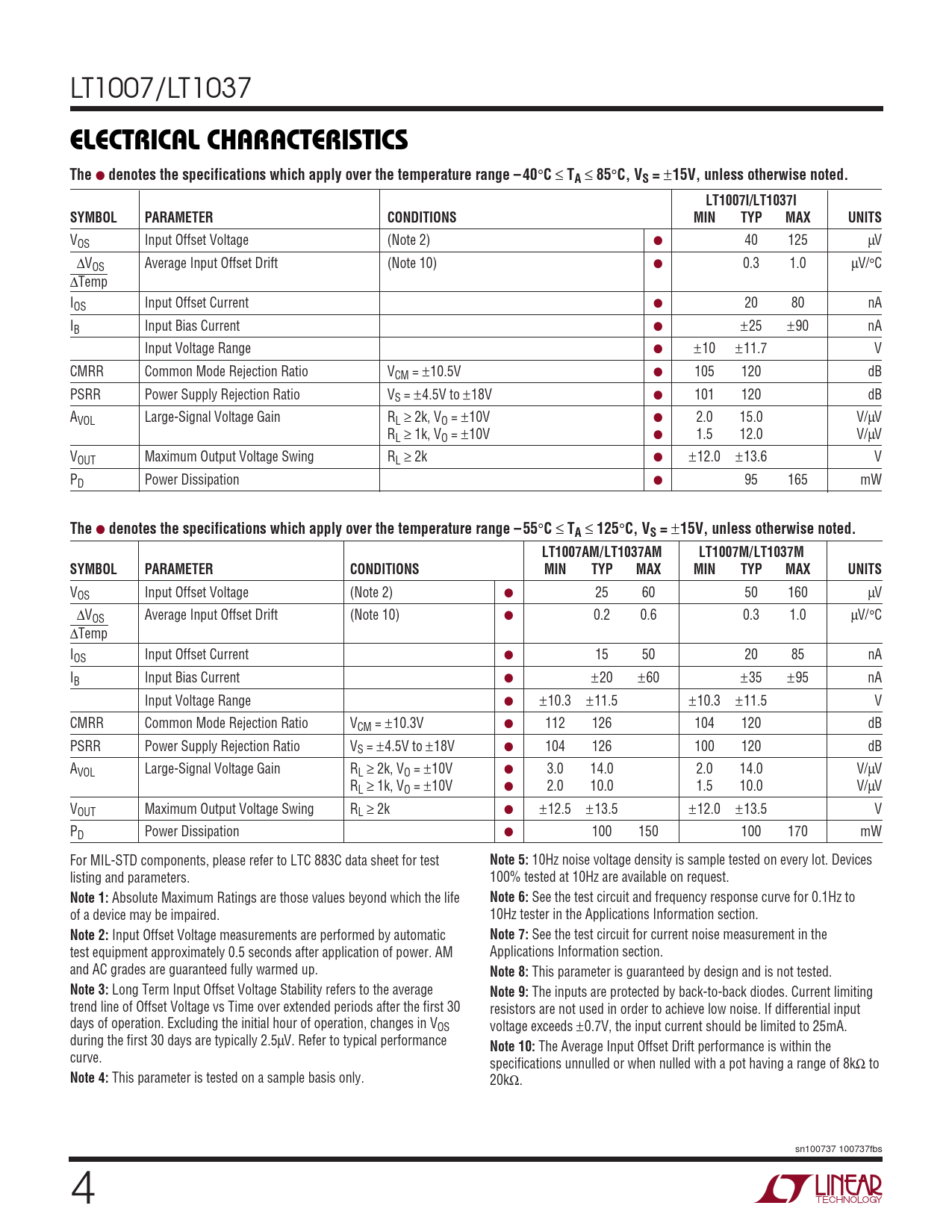 Datasheet LT1007, LT1037 (Analog Devices) - 4