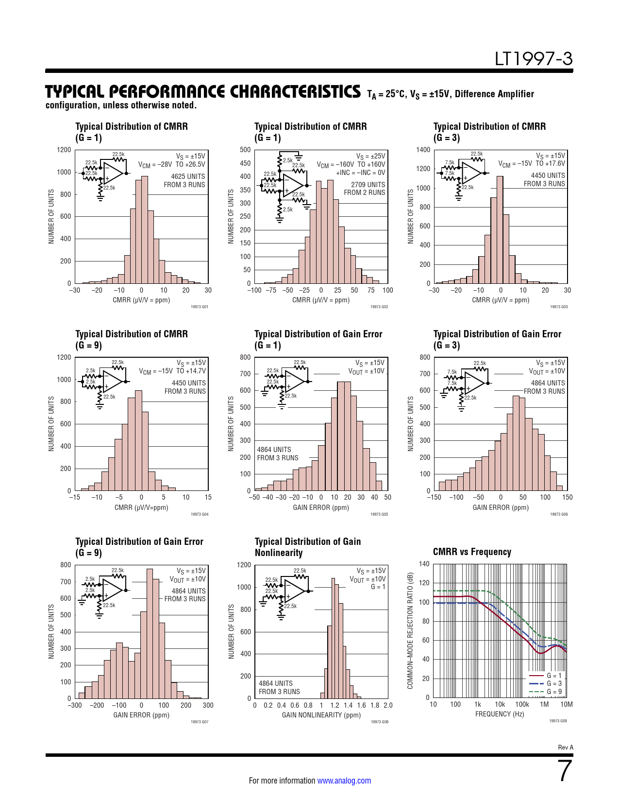Typical Distribution of Gain Error Typical Distribution of Gain (G = 9) Nonlinearity CMRR vs Frequency