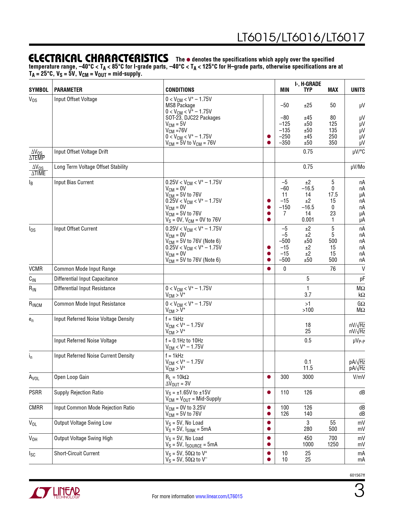 Datasheet LT6015, LT6016, LT6017 (Analog Devices) - 3