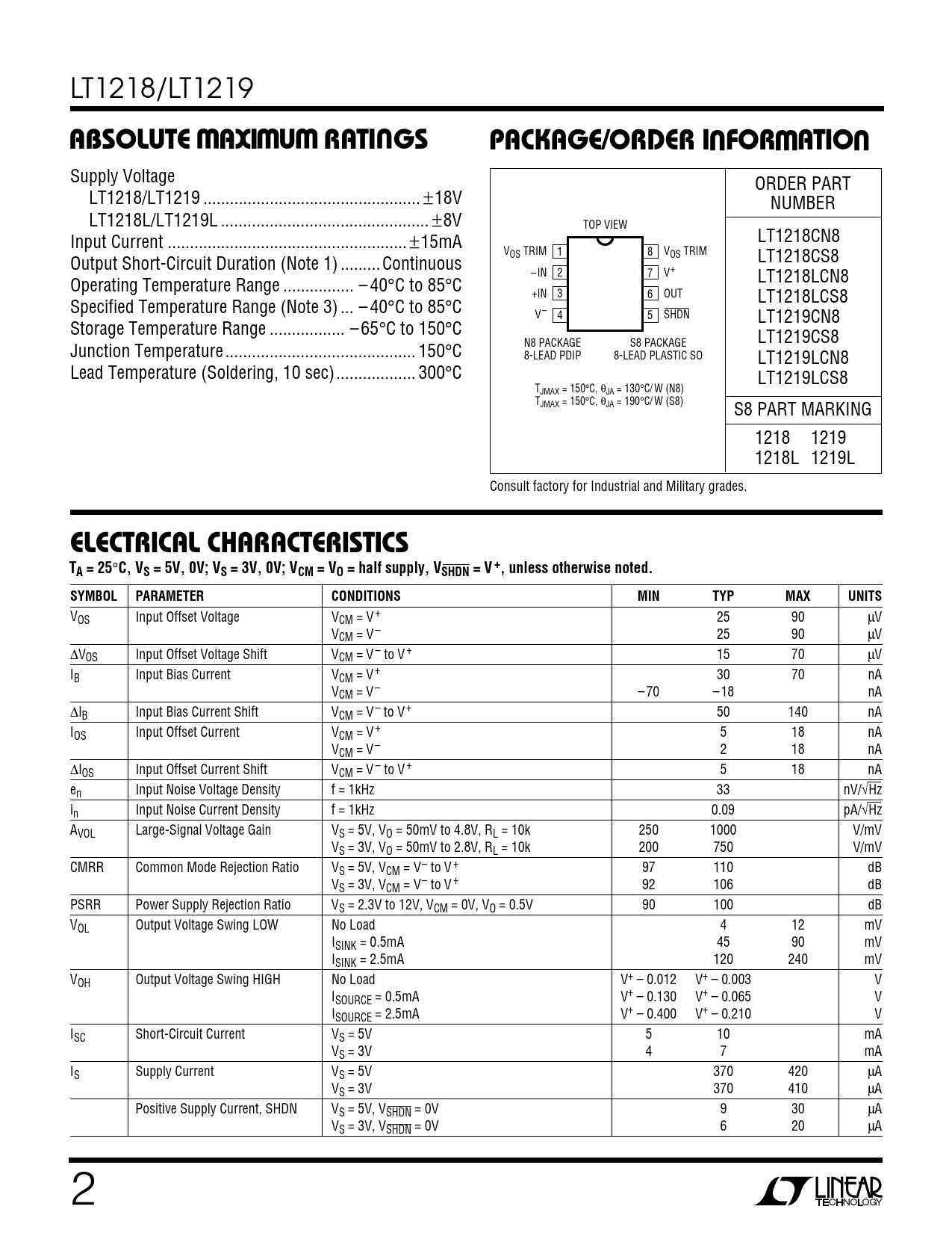 Datasheet LT1218, LT1219 (Analog Devices) - 2