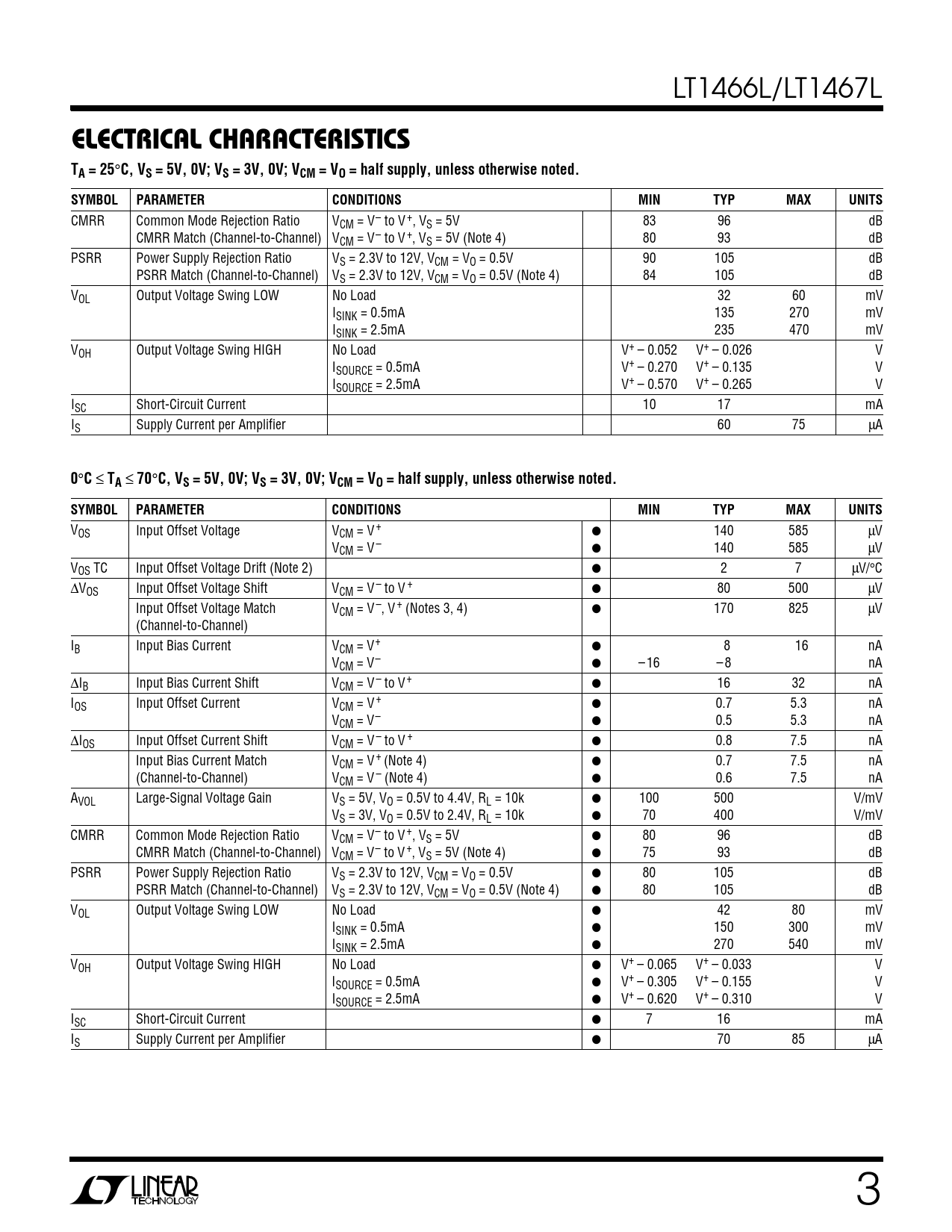 Datasheet LT1466L, LT1467L (Analog Devices) - 3