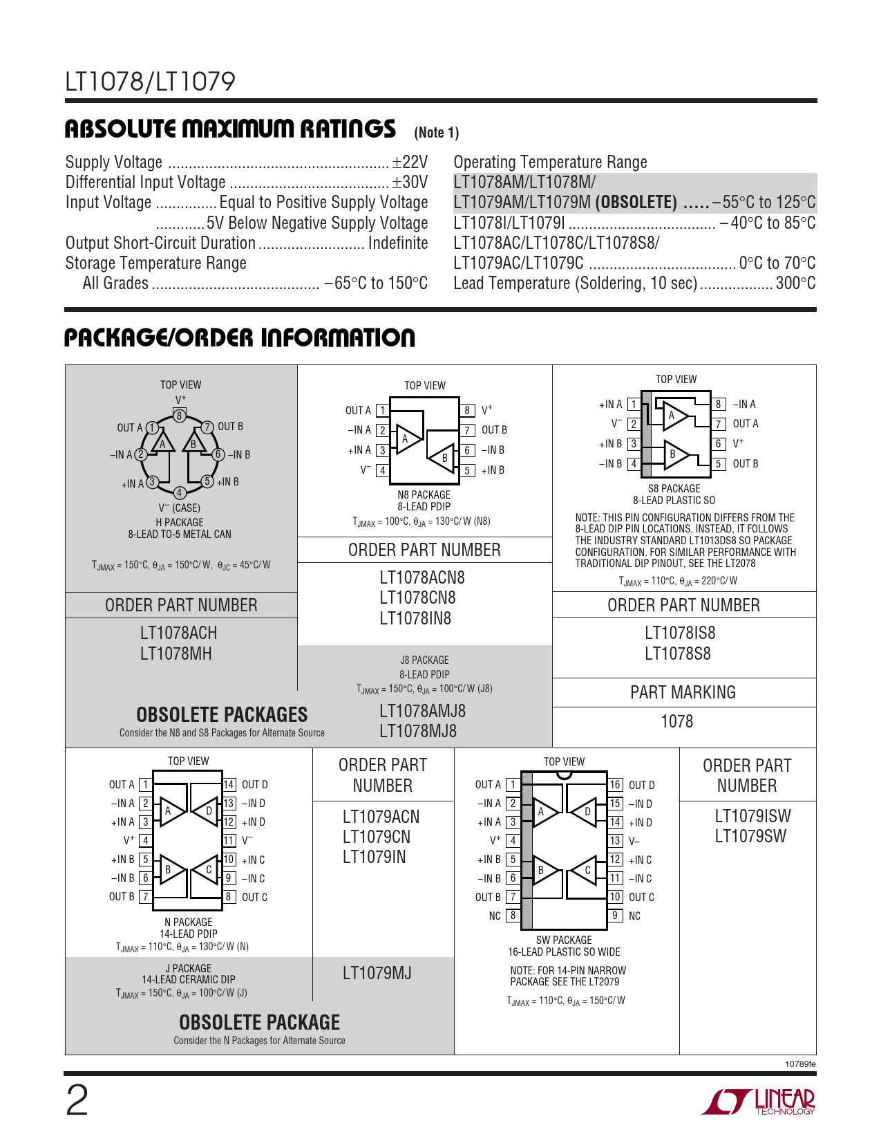 Datasheet LT1078, LT1079 (Analog Devices) - 2