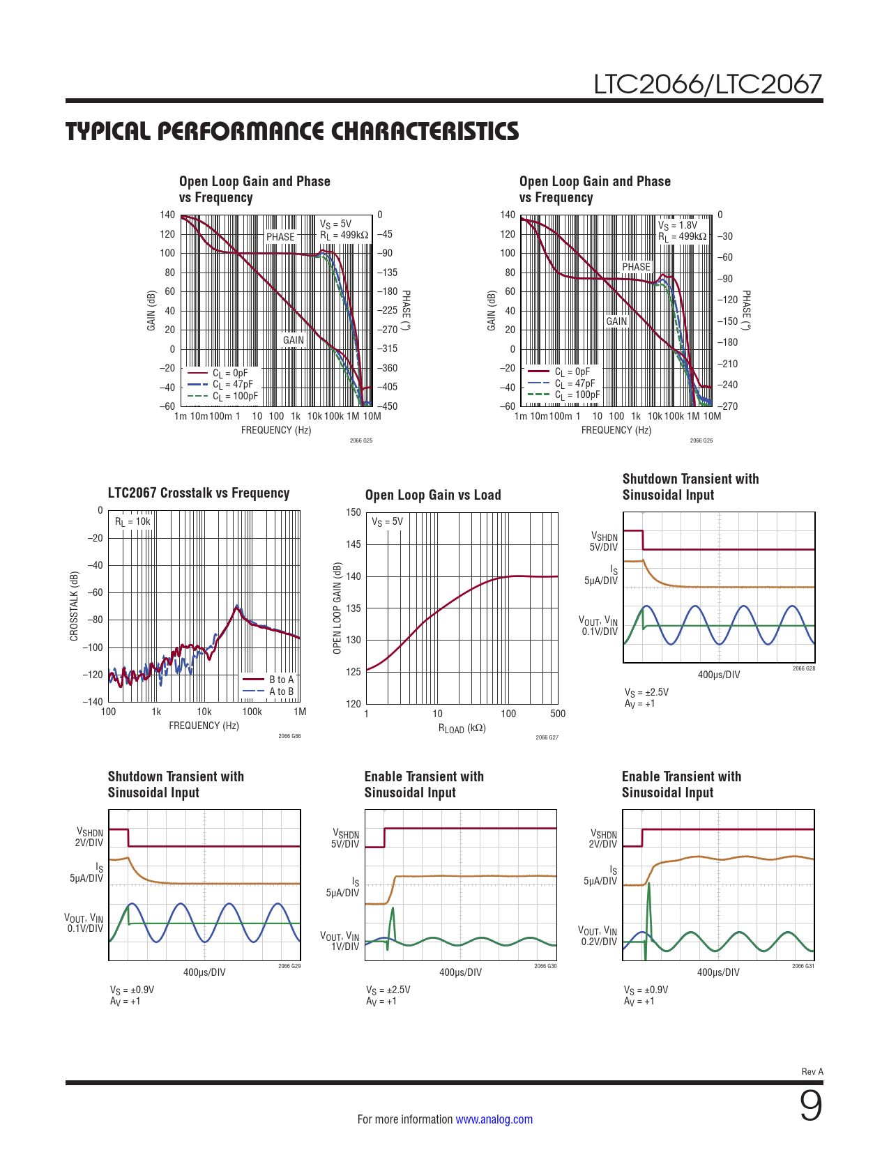 Shutdown Transient with LTC2067 Crosstalk vs Frequency Open Loop Gain vs Load Sinusoidal Input
