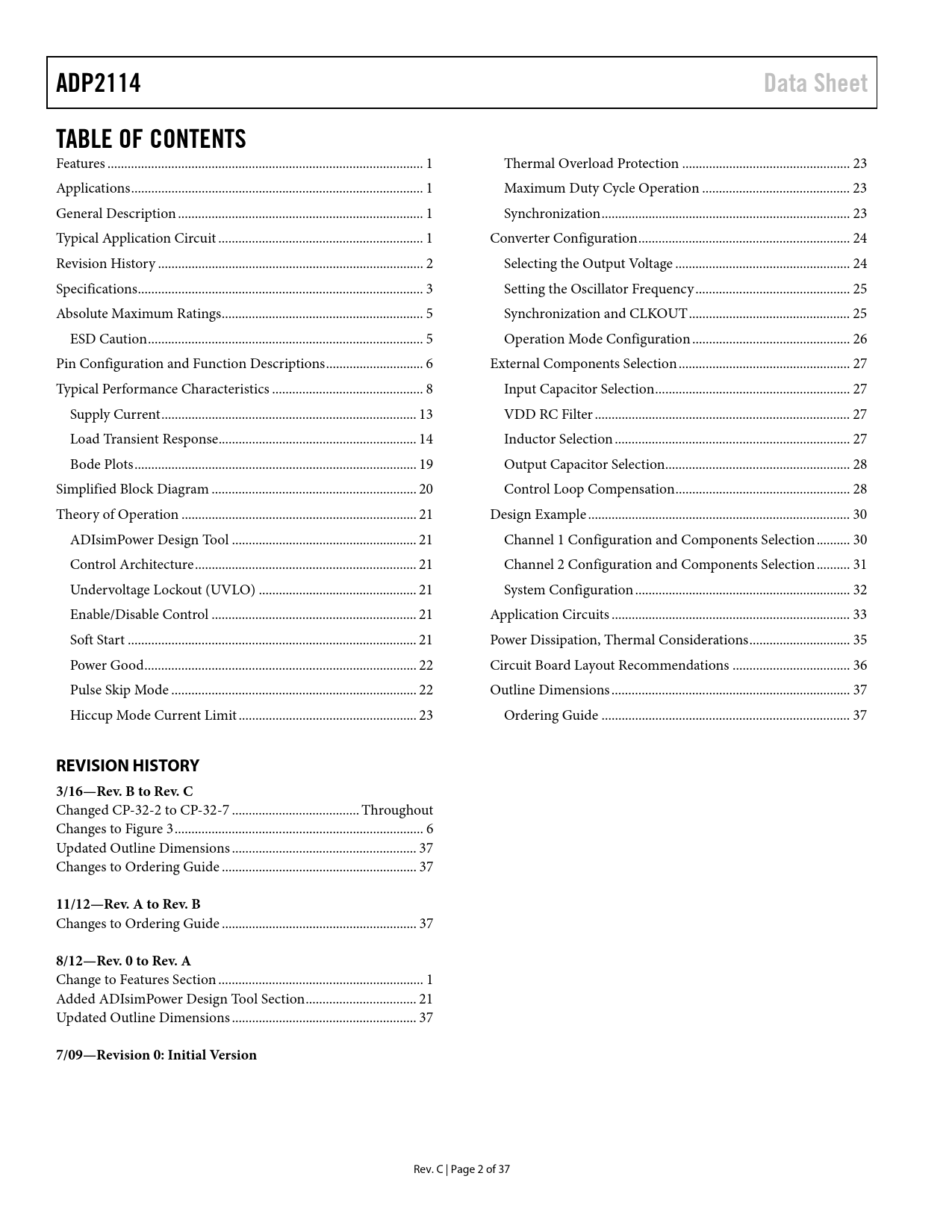 ADP2114 Data Sheet TABLE OF CONTENTS REVISION HISTORY 3/16—Rev B to Rev C 11/12—Rev A to Rev B 8/12—Rev 0 to Rev A