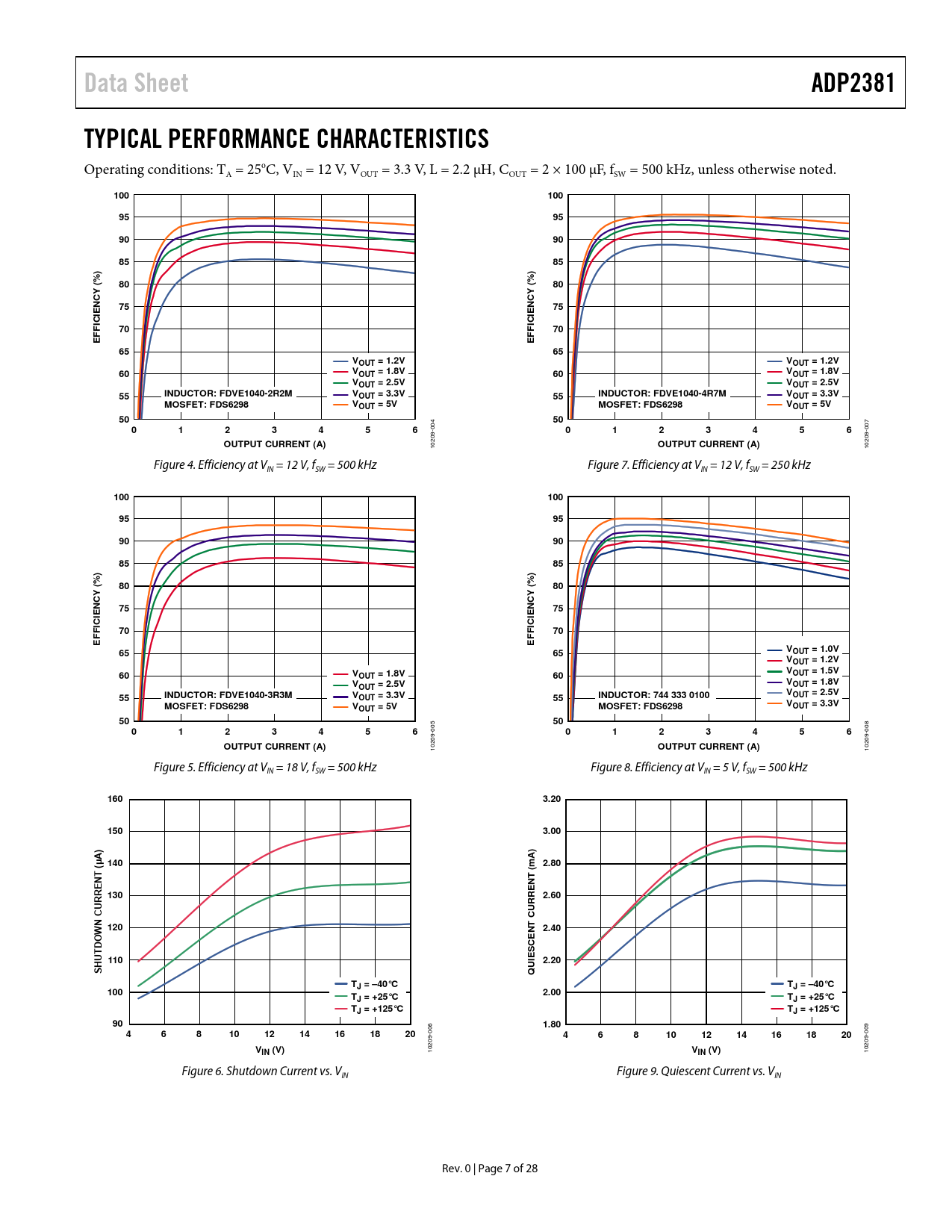 Data Sheet. ADP2381. TYPICAL PERFORMANCE CHARACTERISTICS. 100. NCY. ICI. VOUT = 1.2V. VOUT = 1.8V. VOUT = 2.5V. INDUCTOR: FDVE1040-2R2M