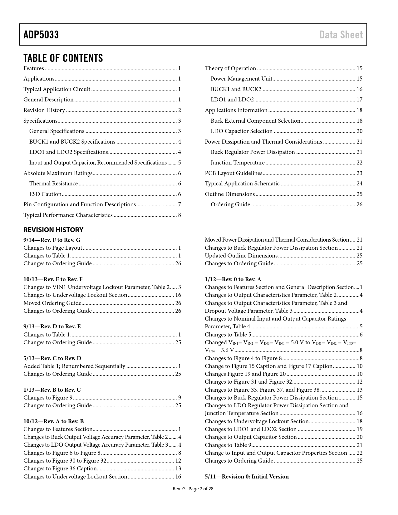 ADP5033 Data Sheet TABLE OF CONTENTS REVISION HISTORY 9/14—Rev F to Rev G 10/13—Rev E to Rev F 1/12—Rev 0 to Rev A
