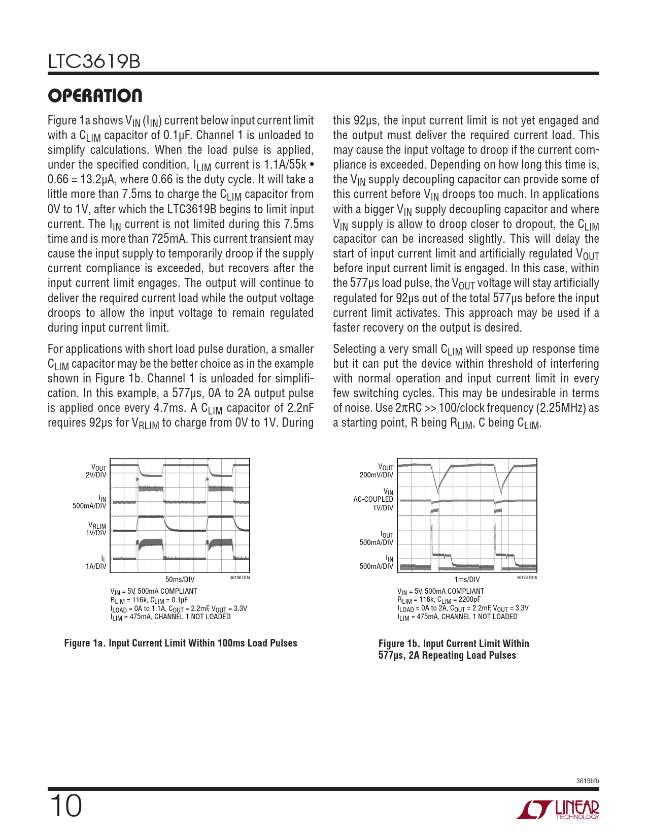 operaTion Figure 1a Input Current Limit Within 100ms Load Pulses Figure 1b Input Current Limit Within