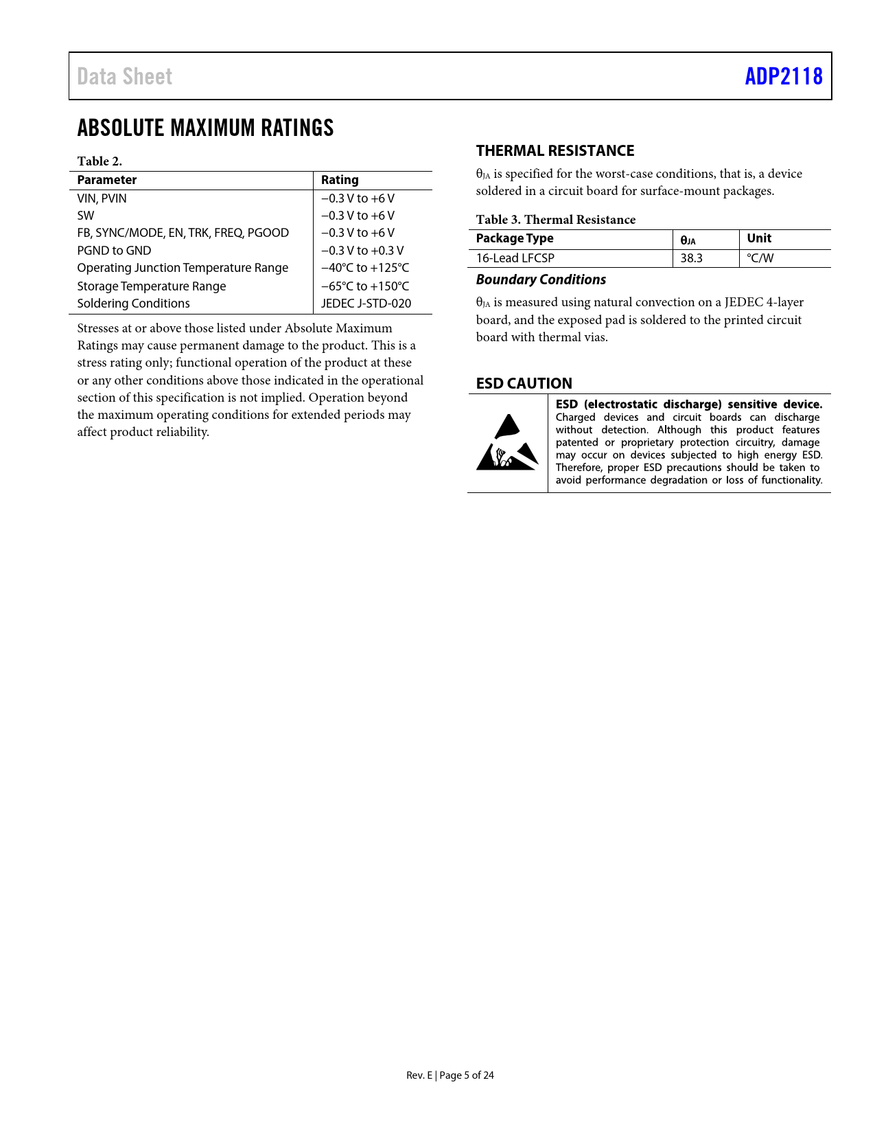 Data Sheet. ADP2118. ABSOLUTE MAXIMUM RATINGS. THERMAL RESISTANCE. Table 2. Parameter. Rating. Table 3. Thermal Resistance