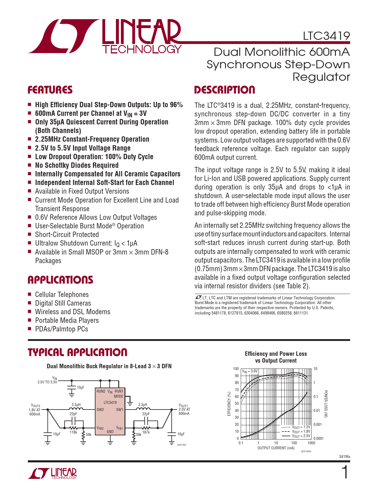 LTC3419 Dual Monolithic 600mA Synchronous Step-Down Regulator