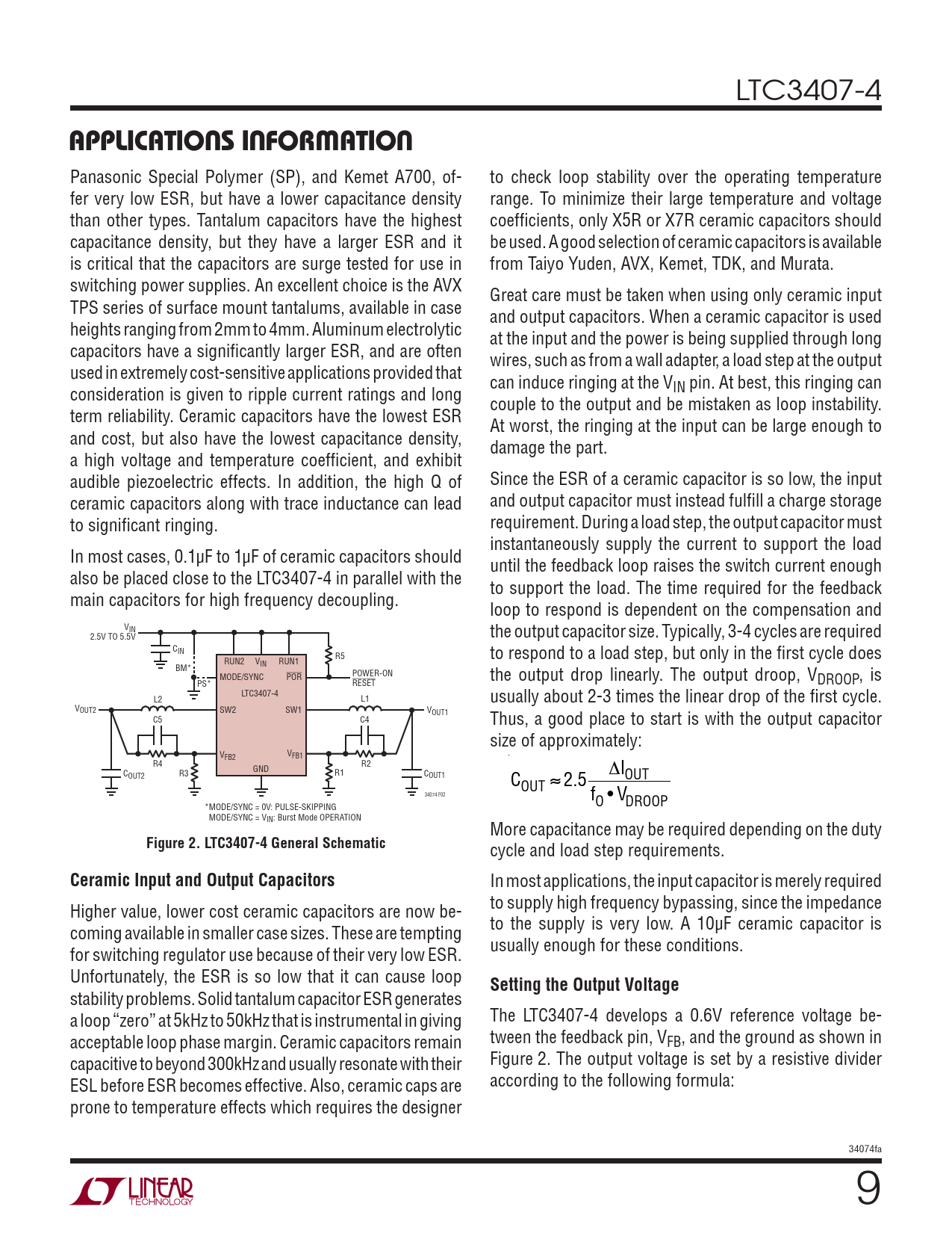 APPLICATIONS INFORMATION. Figure 2. LTC3407-4 General Schematic. Ceramic Input and Output Capacitors