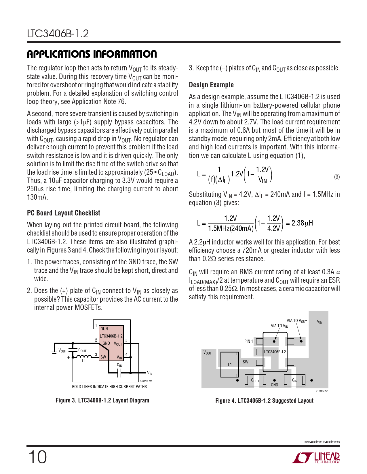 APPLICATIO S I FOR ATIO Design Example PC Board Layout Checklist Figure 3 LTC3406B-1.2 Layout Diagram