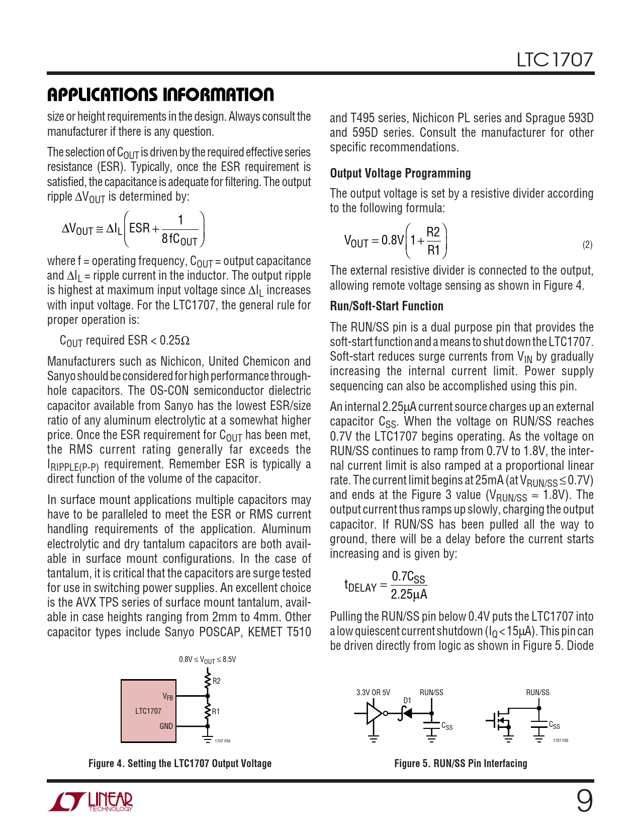 APPLICATIO S I FOR ATIO Output Voltage Programming Run/Soft-Start Function Figure 4 Setting the LTC1707 Output Voltage