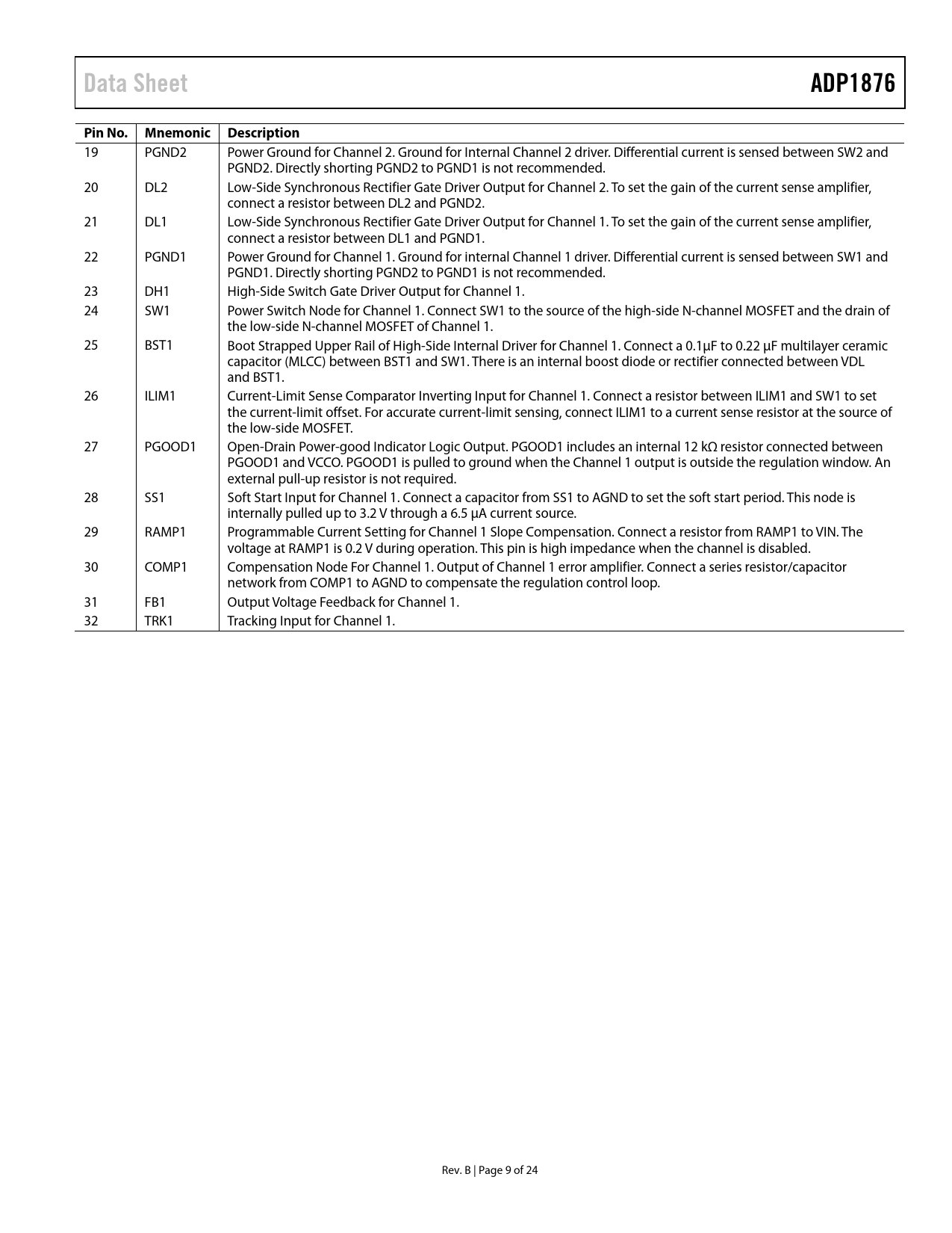 Data Sheet. ADP1876. Pin. No. Mnemonic Description