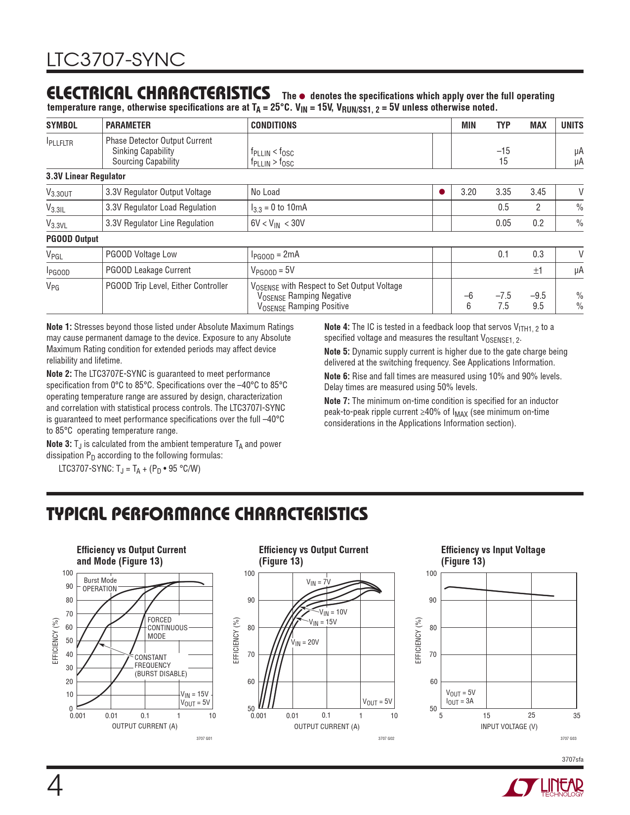 The LTC3707E-SYNC is guaranteed to meet performance