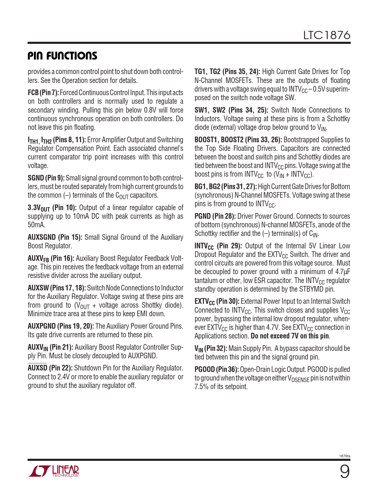 Seiten / Seite36 / 9 — PIN FUNCTIONS. TG1, TG2 (Pins 35, 24):. FCB (Pin 7):. SW1, SW2 (Pins 34, …