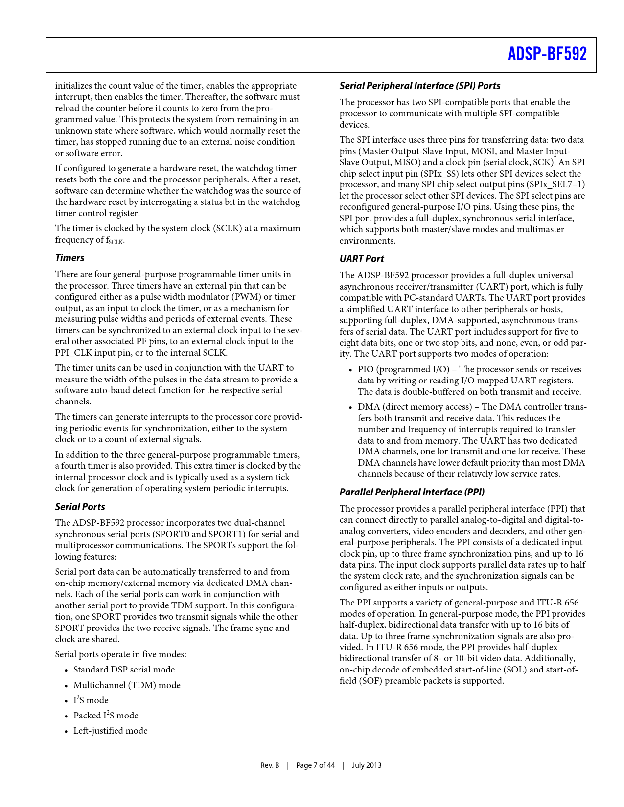 Seiten / Seite44 / 7 — ADSP-BF592. Serial Peripheral Interface (SPI) Ports. Timers. UART Port. …