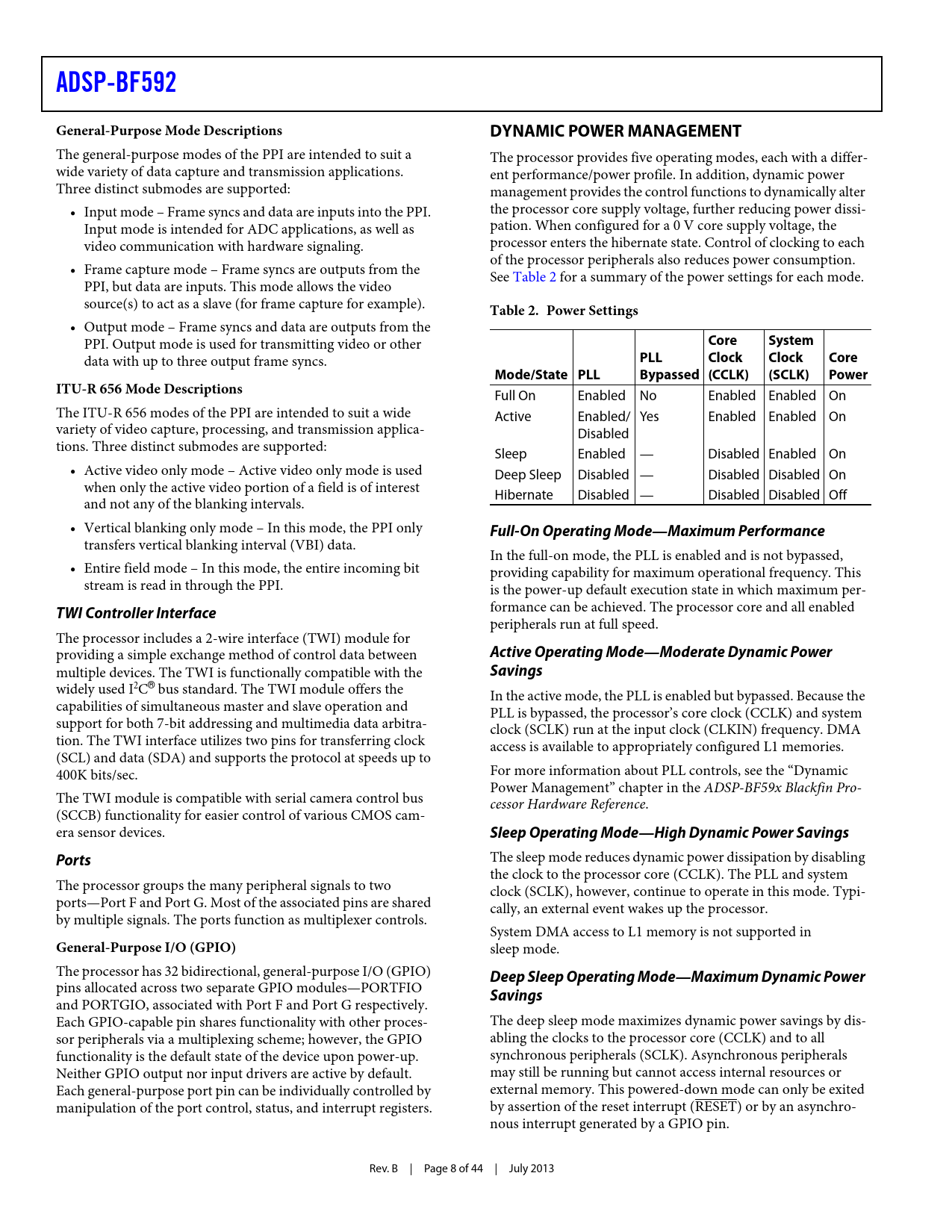 ADSP-BF592 General-Purpose Mode Descriptions DYNAMIC POWER MANAGEMENT