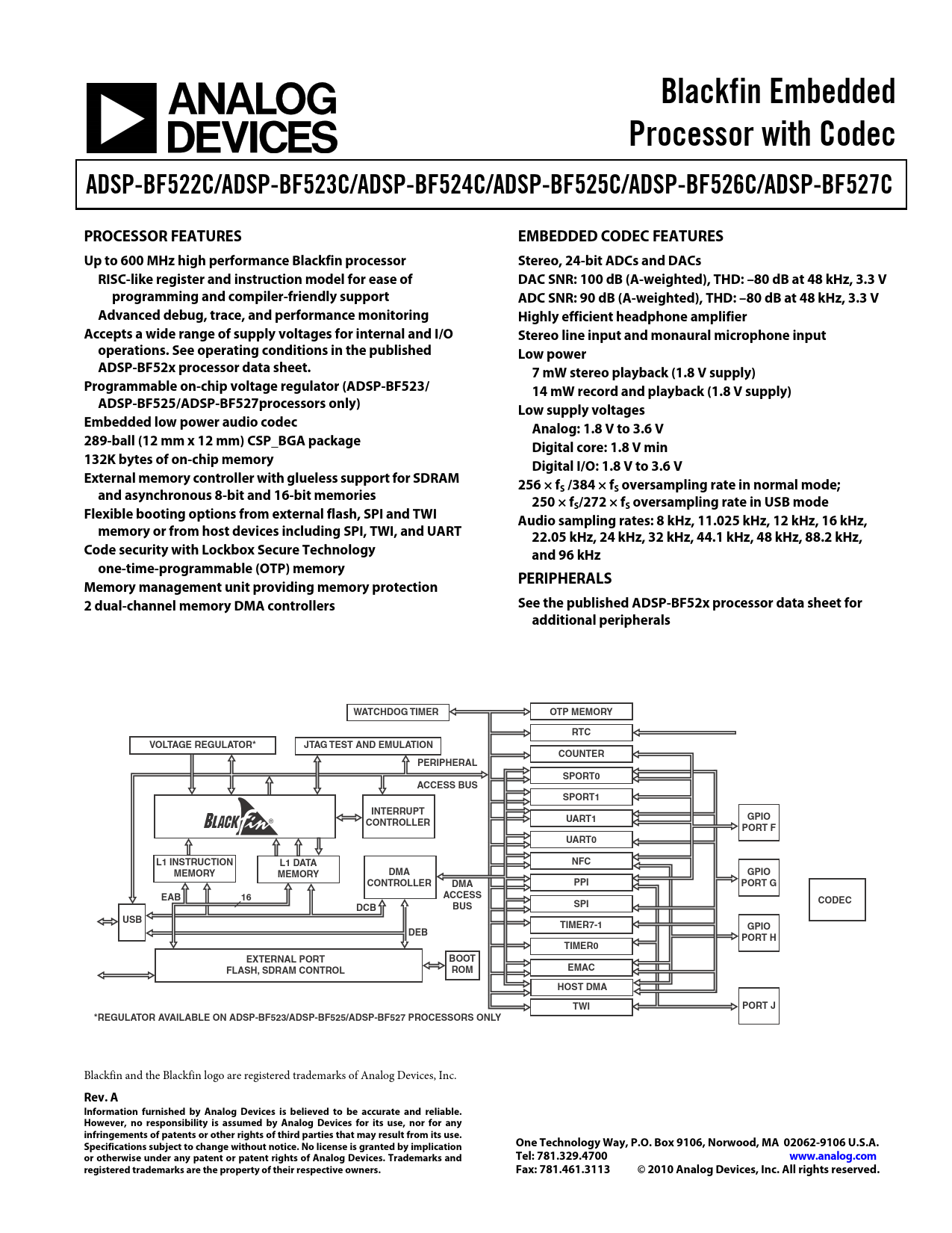 Blackfin Embedded Processor with Codec ADSP-BF522C/ADSP-BF523C/ADSP-BF524C/ADSP-BF525C/ADSP-BF526C/ADSP-BF527C
