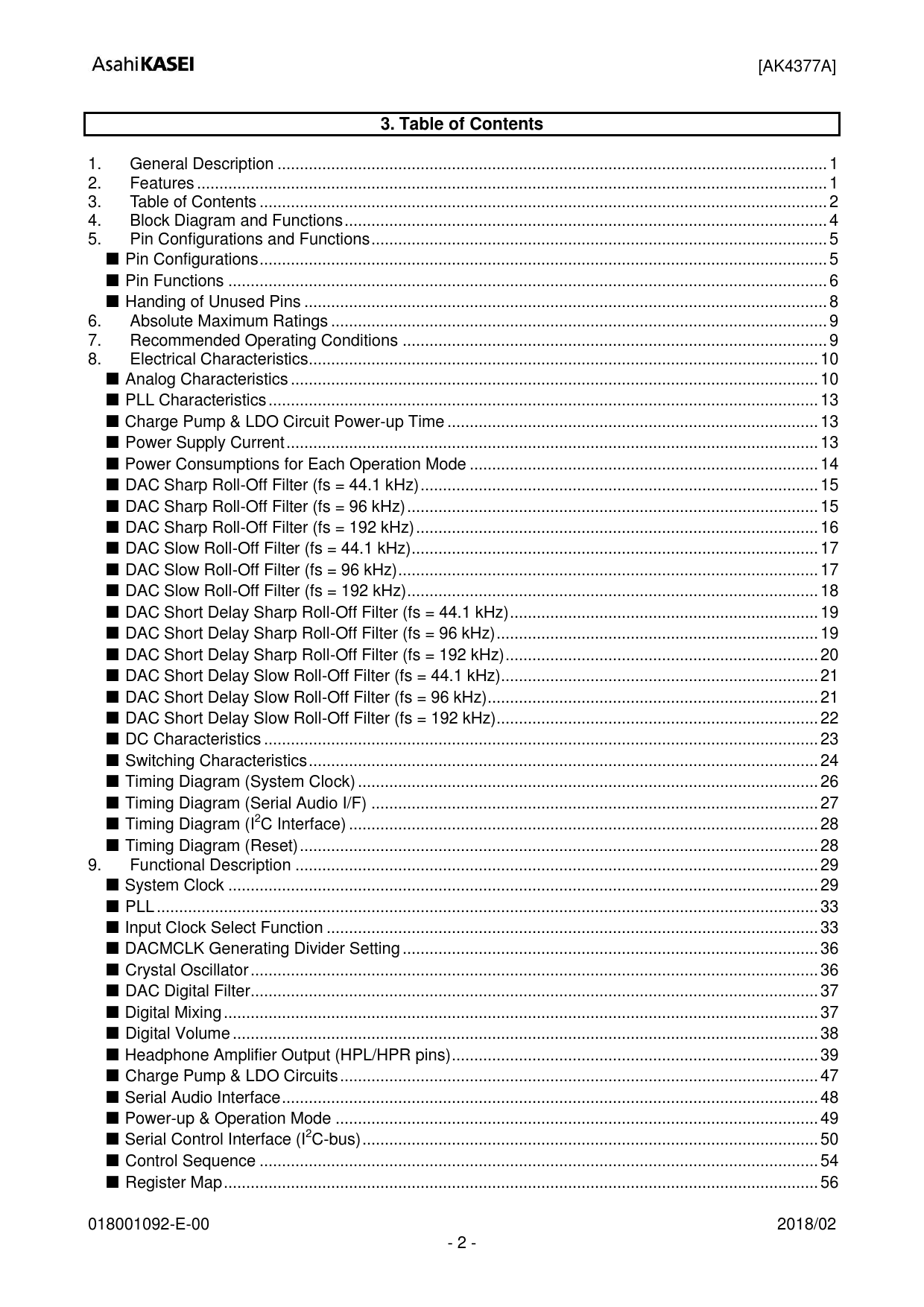 [AK4377A] 3. Table of Contents. 5. General Description . 1. Features . 1. Table of Contents . 2
