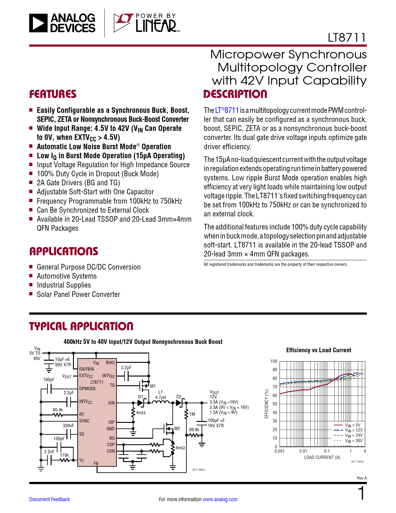 LT8711 Micropower Synchronous Multitopology Controller with 42V Input Capability