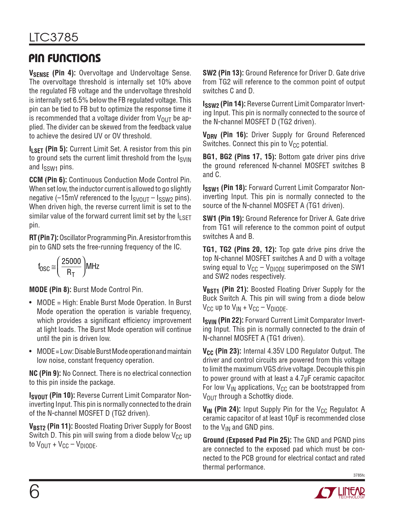LTC3785 pin FuncTions