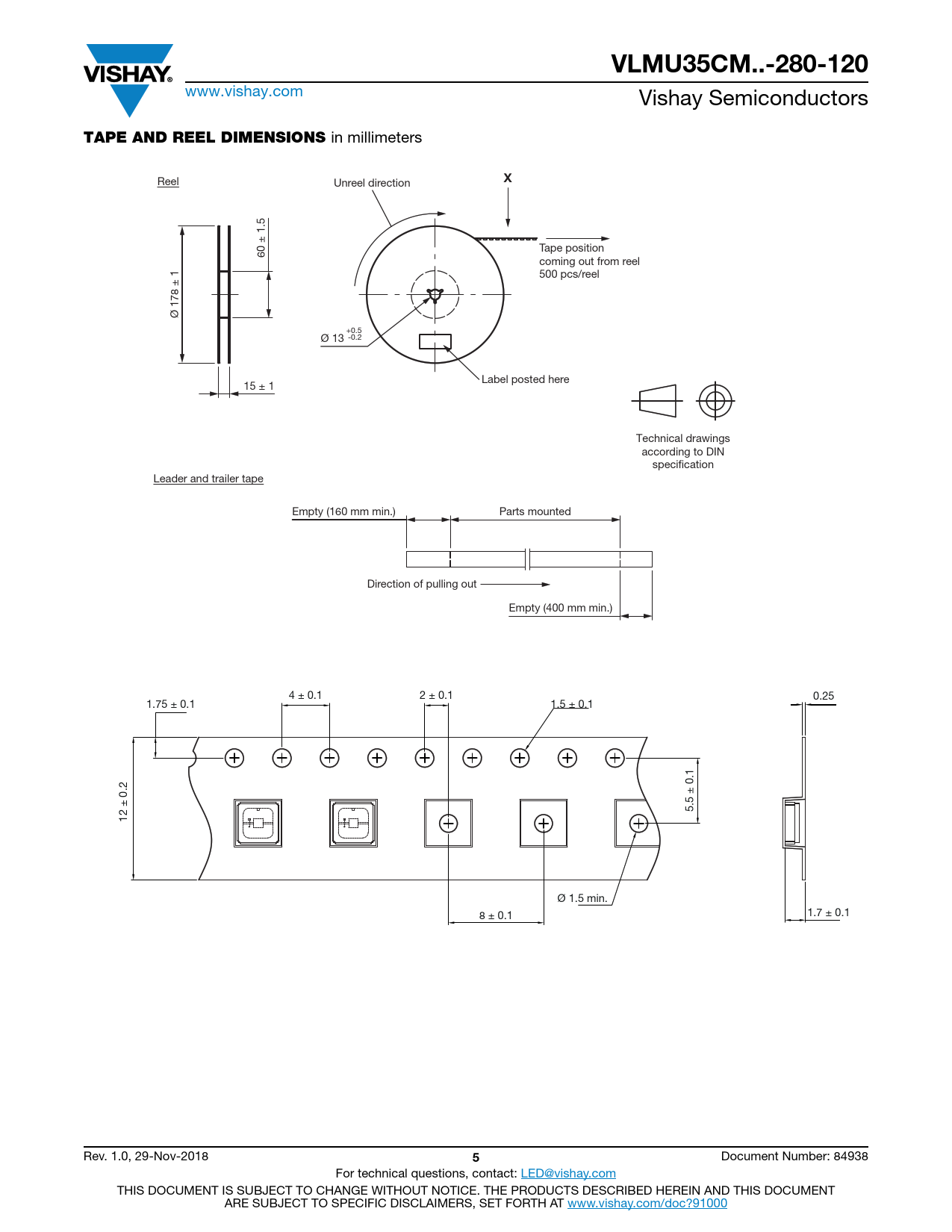 Seiten / Seite7 / 5 — VLMU35CM..-280-120. TAPE AND REEL DIMENSIONS