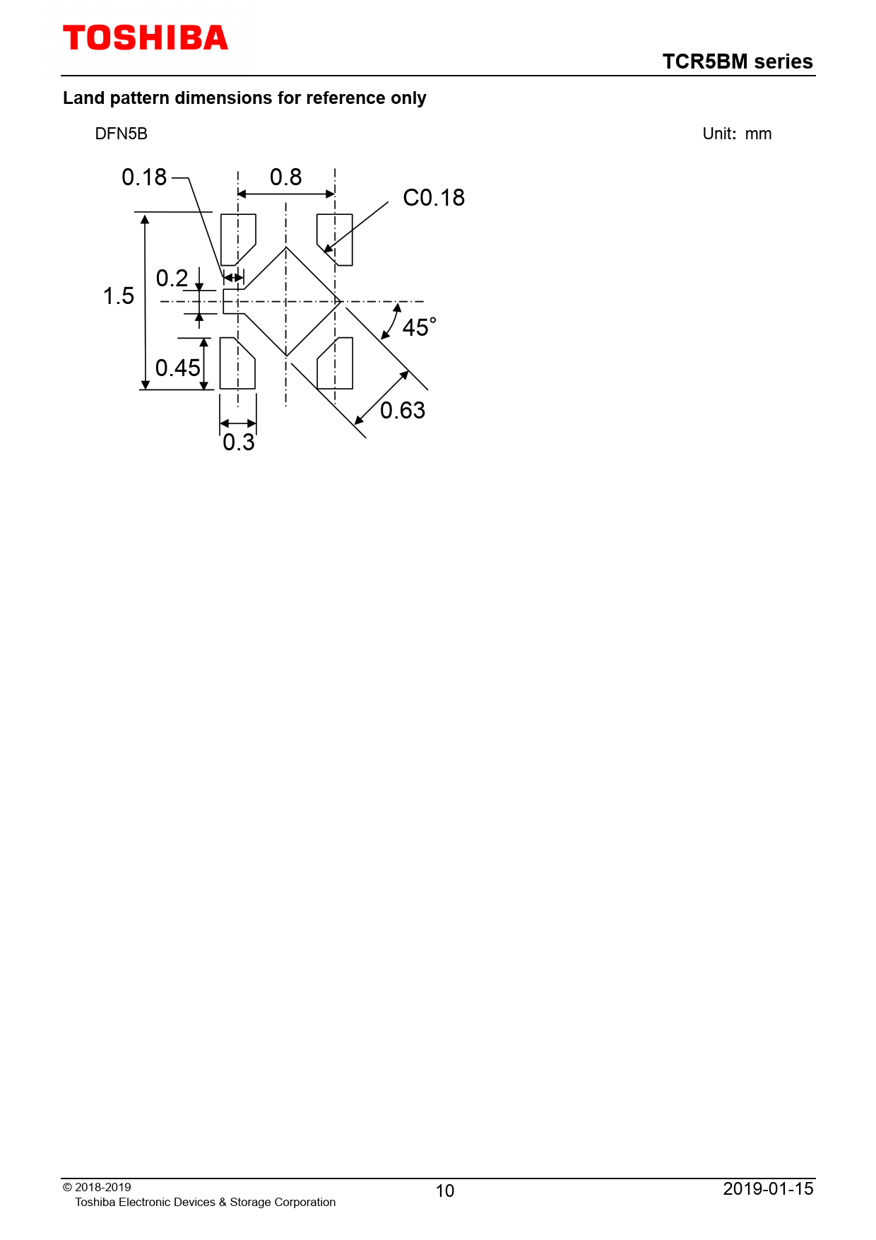 mm 0.18 0.8 C0.18 0.2 1.5 45° 0.45 0.63 0.3 © 2018-2019 10 2019-01-15 Toshiba Electronic Devices & Storage Corporation