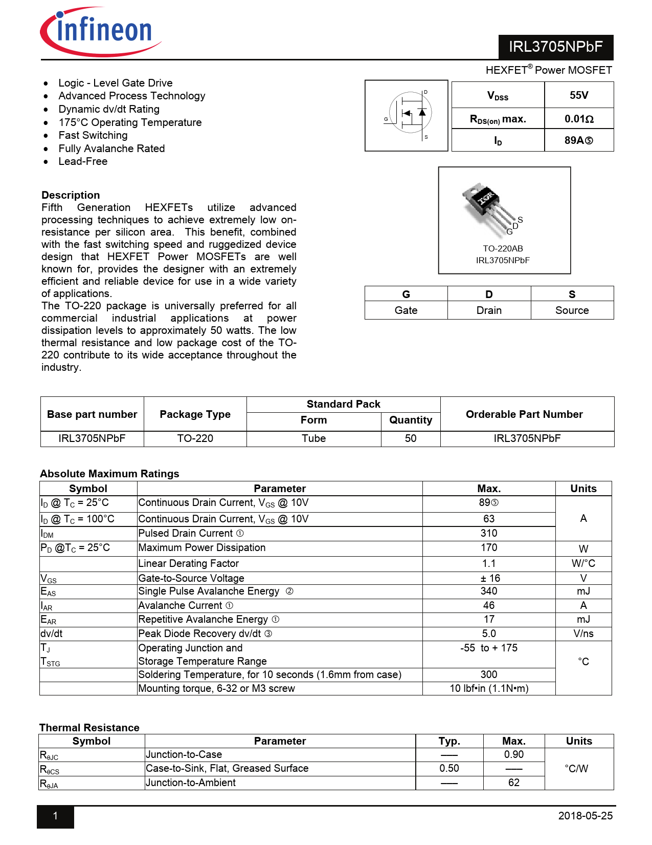 Datasheet IRL3705N Infineon, Revision: 01_02