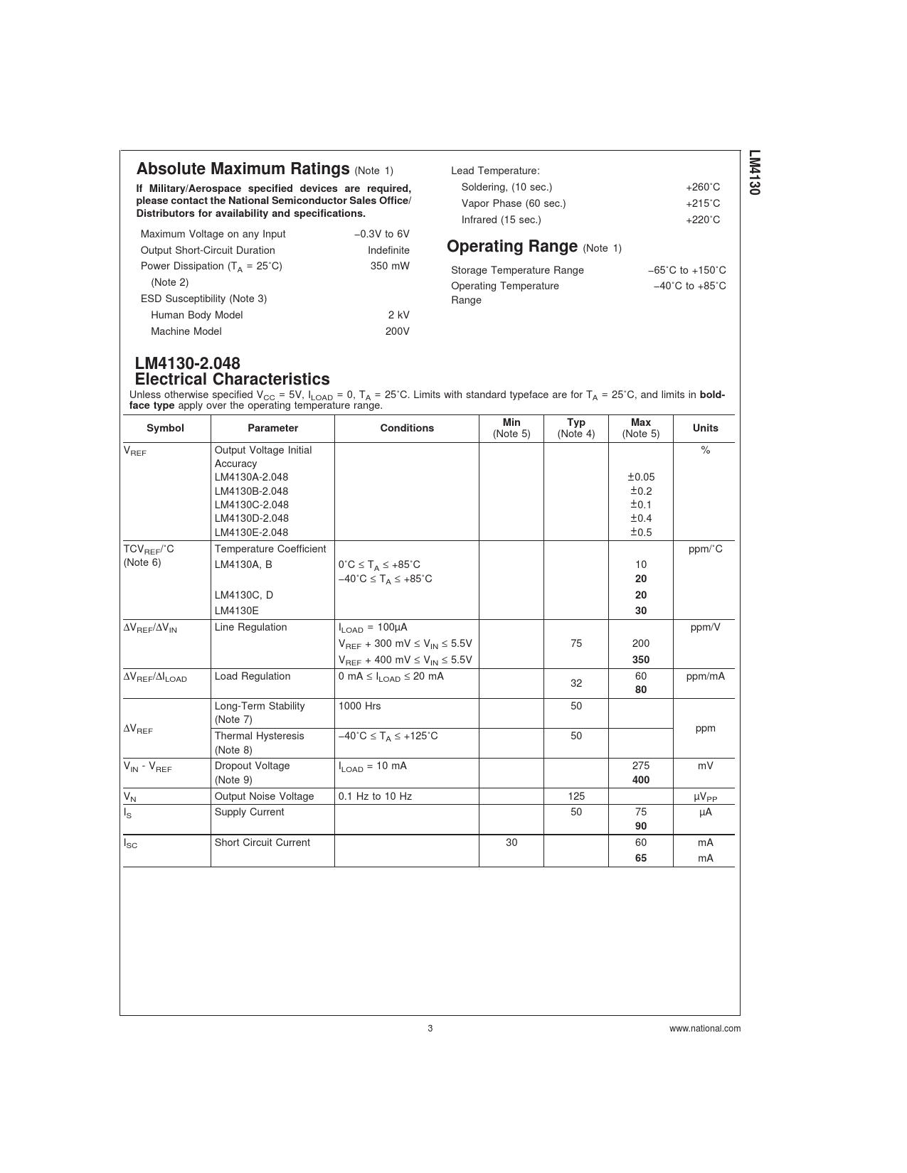 Seiten / Seite12 / 3 — LM4130. Absolute Maximum Ratings. If Military/Aerospace specified devices …