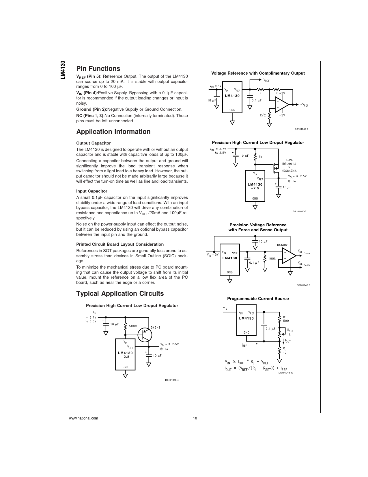 Pin Functions Voltage Reference with Complimentary Output (Pin 5): REF LM4130 (Pin 4): Ground (Pin 2): NC (Pins 1, 3):