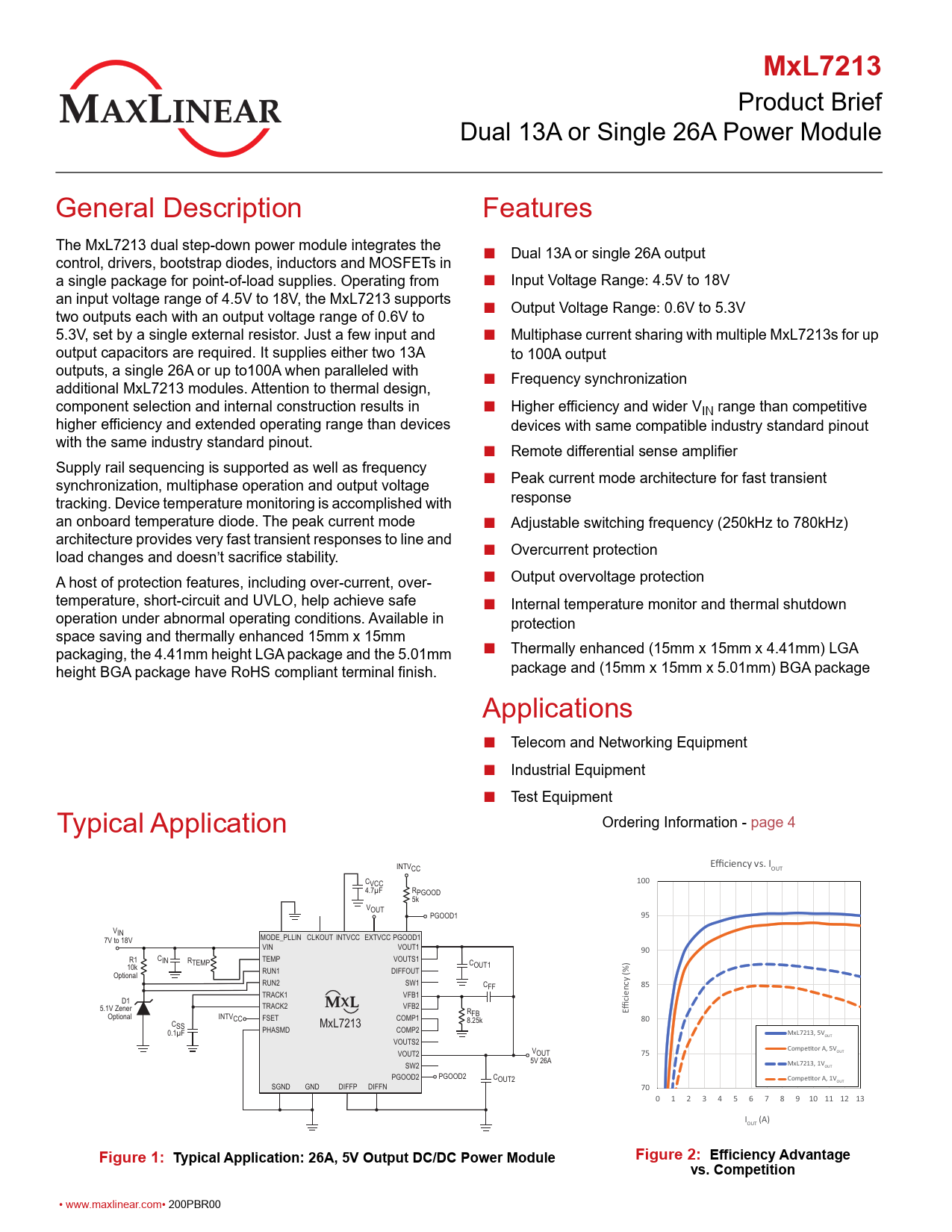 MxL7213. Figure 1: Typical Application: 26A, 5V Output DC/DC Power Module. Figure 2: Efficiency Advantage. vs. Competition