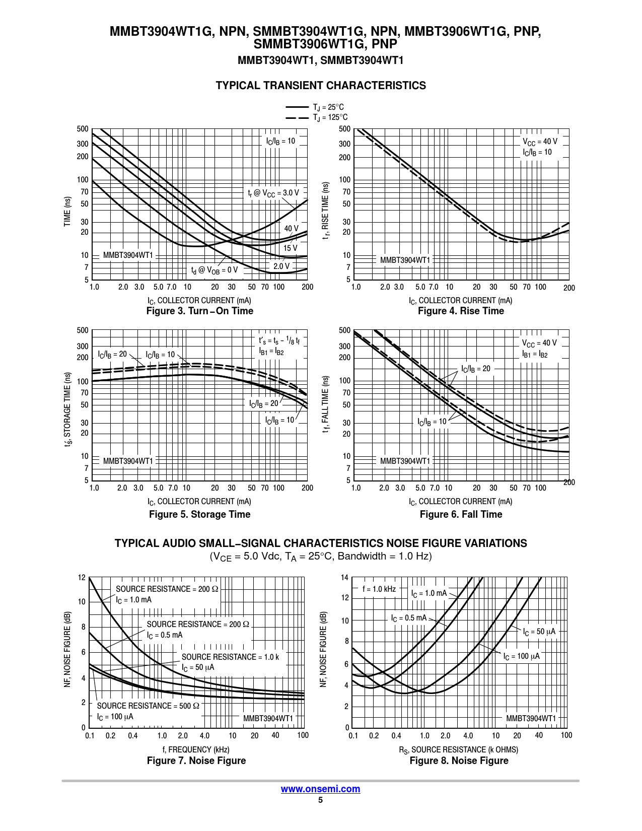 Figure 5. Storage Time Figure 6. Fall Time TYPICAL AUDIO SMALL−SIGNAL CHARACTERISTICS NOISE FIGURE VARIATIONS
