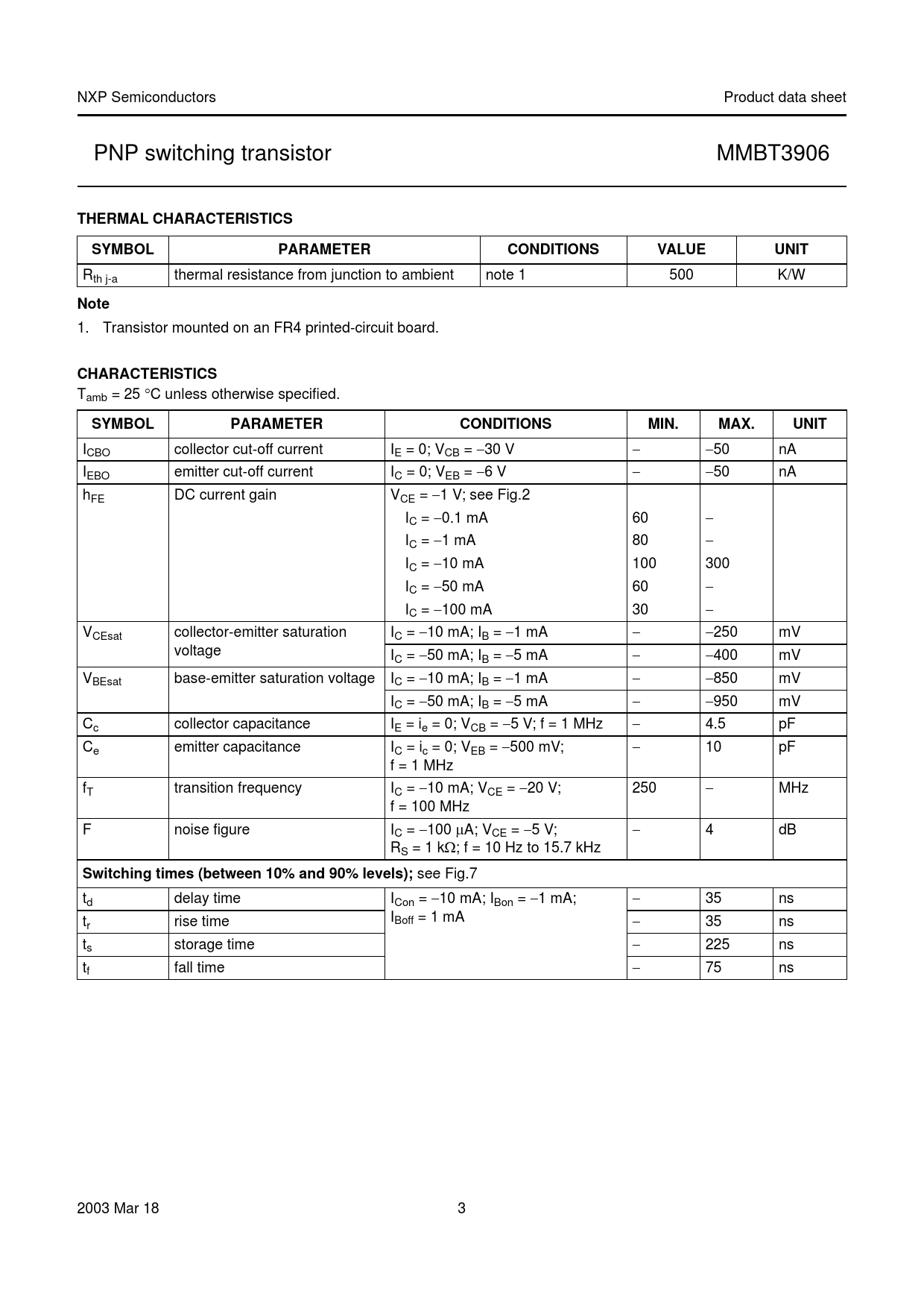 link to page 3 link to page 4 link to page 5 NXP Semiconductors Product data sheet PNP switching transistor MMBT3906