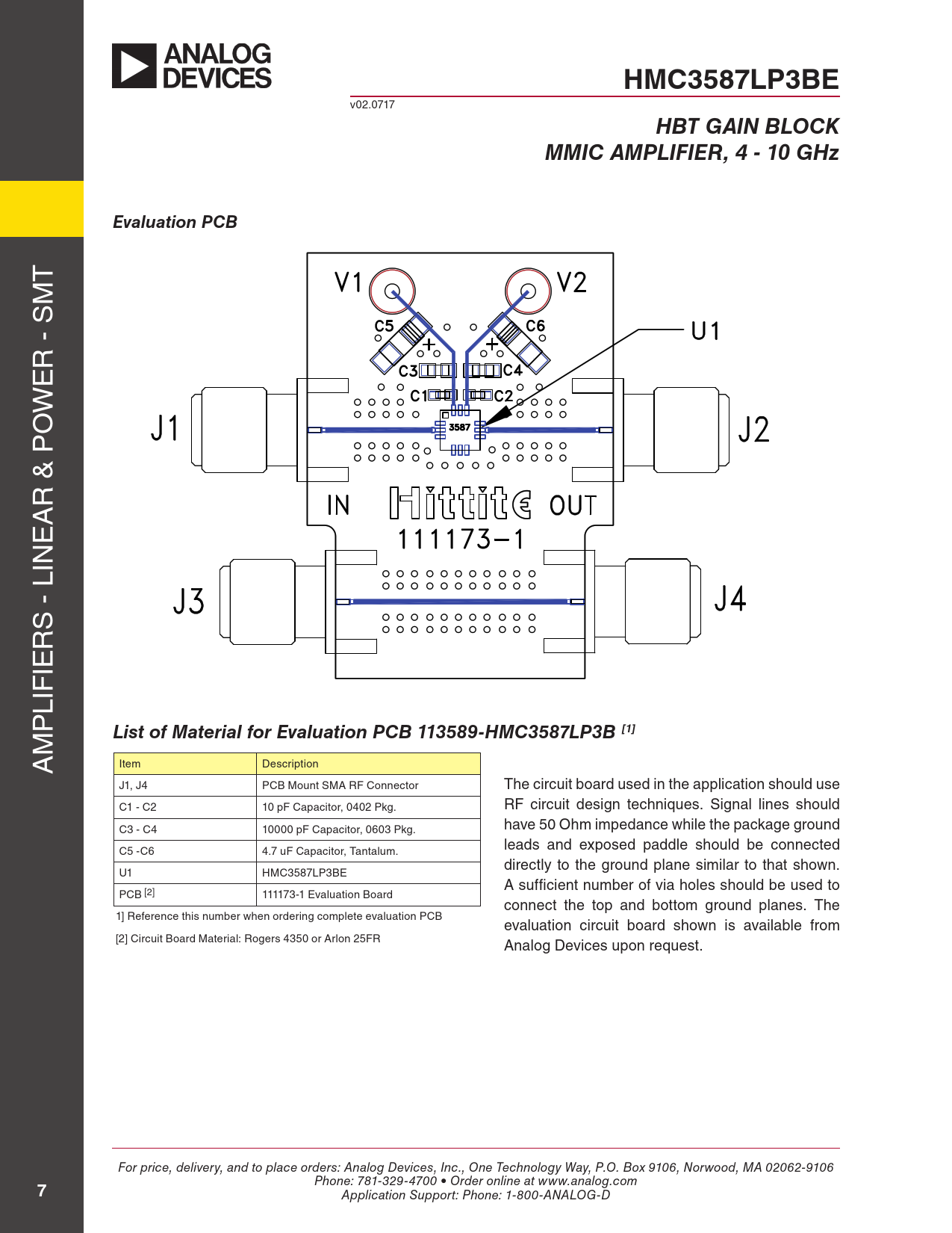 Seiten / Seite8 / 7 — HMC3587LP3BE. HBT GAIN BLOCK. MMIC AMPLIFIER, 4 - 10 GHz. Evaluation PCB