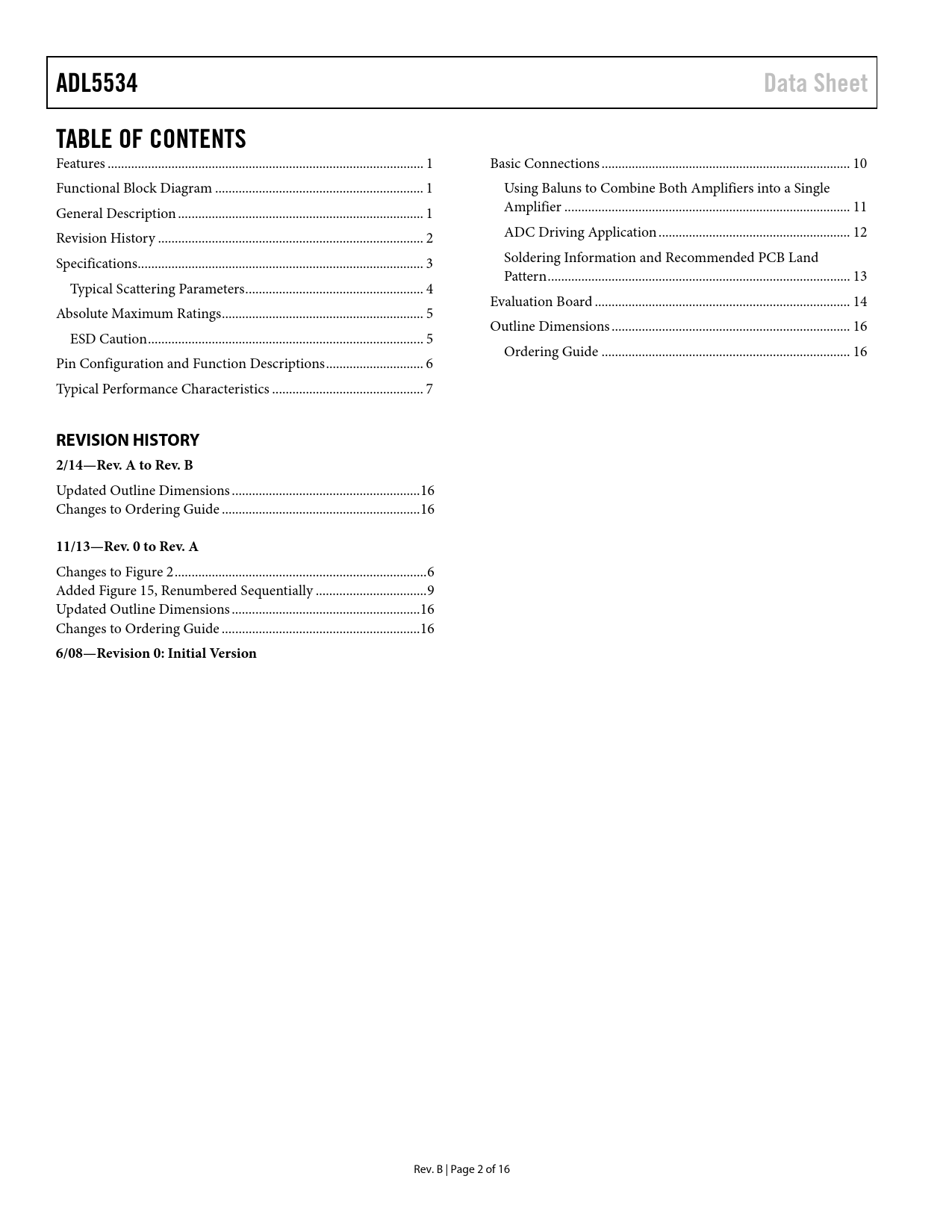 Seiten / Seite16 / 2 — ADL5534. Data Sheet. TABLE OF CONTENTS. REVISION HISTORY 2/14—Rev. A to …