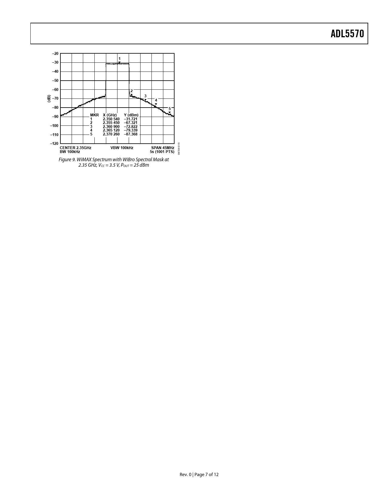 ADL5570. –20. –30. –40. –50. –60. –70. (dB. –80. –90. MKR X (GHz). Y (dBm). 2.350 540. –31.721. 2.355 450. –67.321. –100. 2.360 900. –72.822. 2.365 120