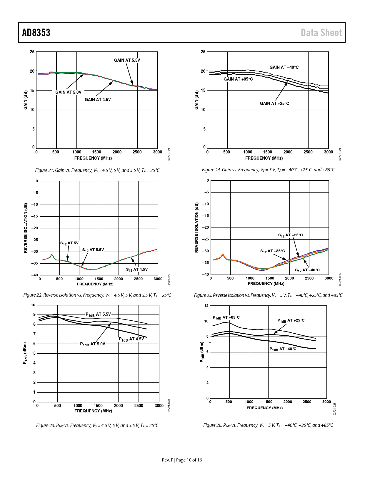 AD8353. Data Sheet. GAIN AT 5.5V. GAIN AT –40. GAIN AT +85. GAIN AT 5.0V. GAIN AT 4.5V. GAIN AT +25. GAIN (dB) 10. 500. 1000. 1500. 2000. 2500