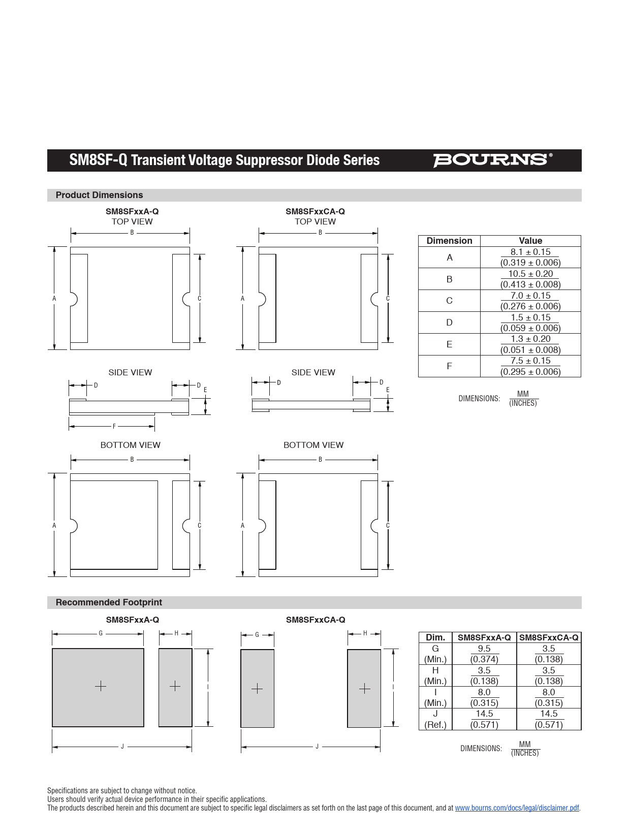G 9.5 3.5 (Min.) (0.374) (0.138) H 3.5 3.5 I I (Min.) (0.138) (0.138) I I I 8.0 8.0 (Min.) (0.315) (0.315) J 14.5 14.5 (Ref.) (0.571) (0.571) J J J J DIMENSIONS: MM (INCHES) Specifications are subject to change without notice. Users should verify actual device performance in their specific applications. The products described herein and this document are subject to specific legal disclaimers as set forth on the last page of this document, and at www.bourns.com/docs/legal/disclaimer.pdf.