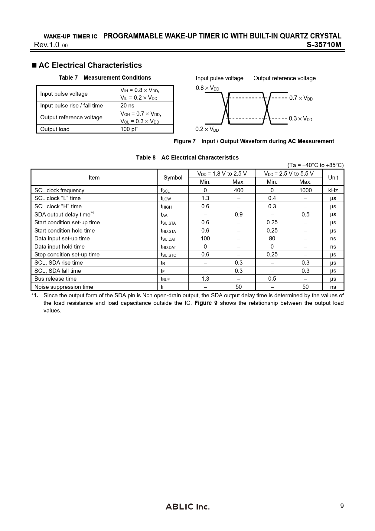 Figure 7 Input / Output Waveform during AC Measurement Table 8 AC Electrical Characteristics