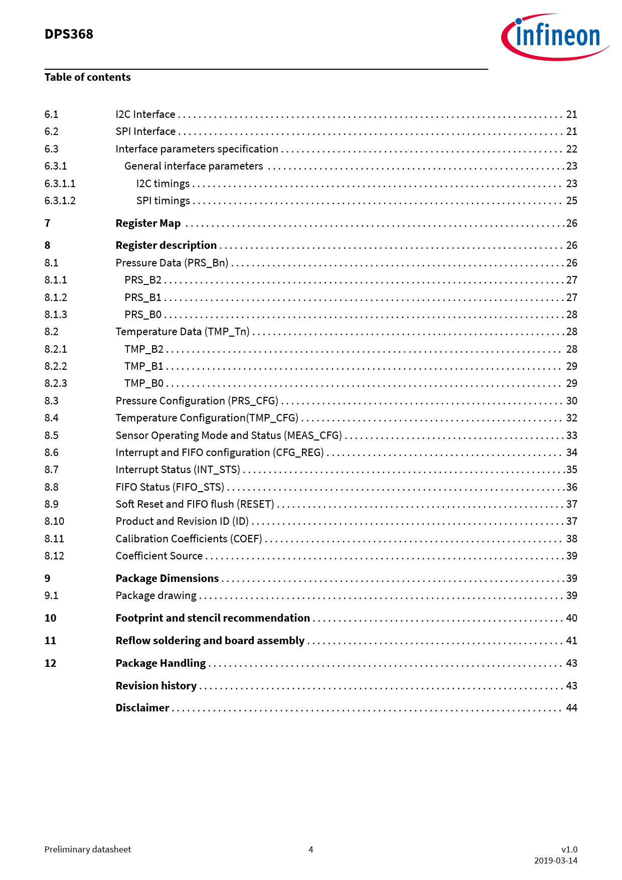 DPS368. Table of contents. Register Map. Register description. Package Dimensions. Footprint and stencil recommendation