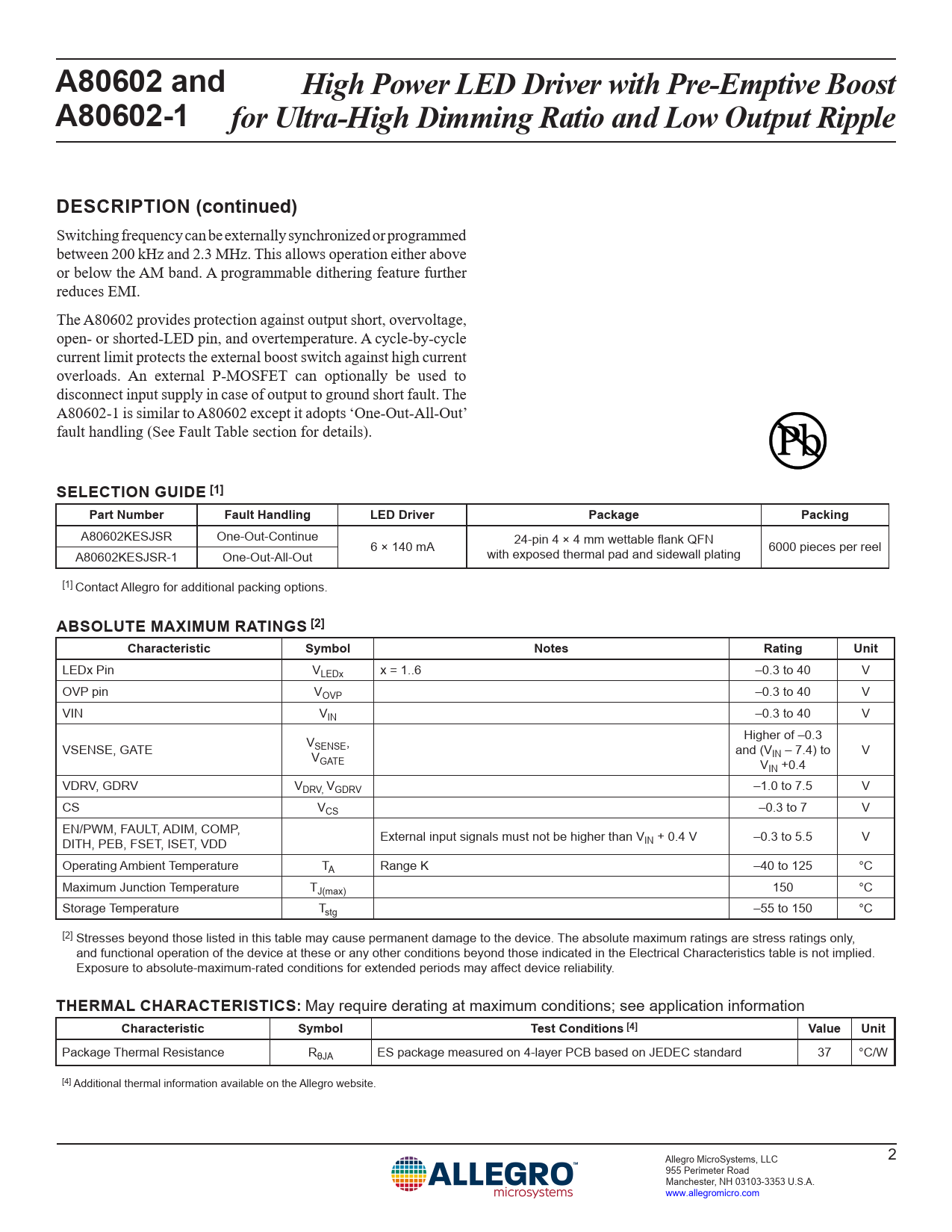 Datasheet A80602, A80602-1 (Allegro) - 2
