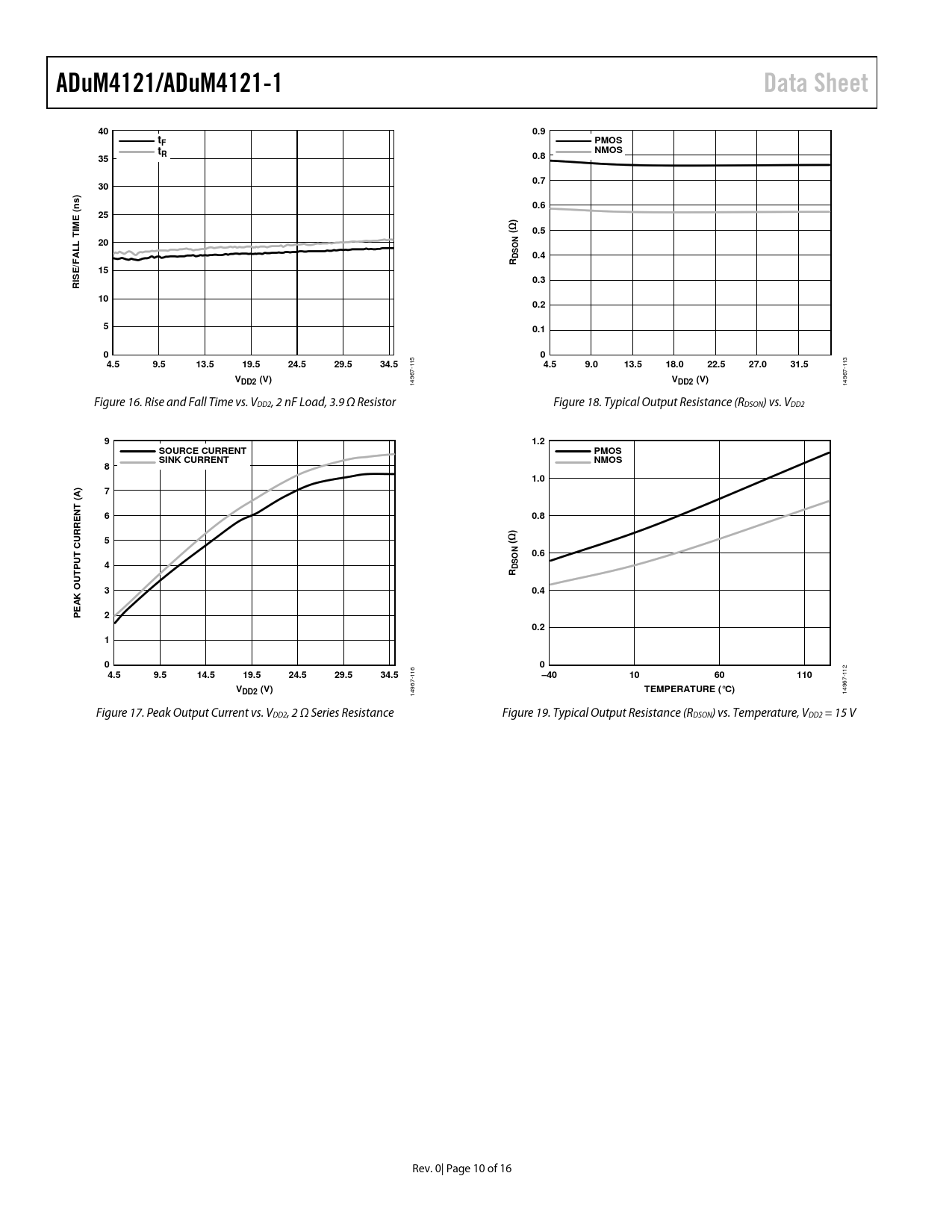 ADuM4121/ADuM4121-1. Data Sheet. 0.9. PMOS. NMOS. 0.8. 0.7. ) ns. 0.6. 0.5. (Ω). LL TIM. O DS. 0.4. /FA. 0.3. 0.2. 0.1. 4.5. 9.5. 13.5. 19.5. 24.5. 29.5. 34.5. 9.0. 18.0