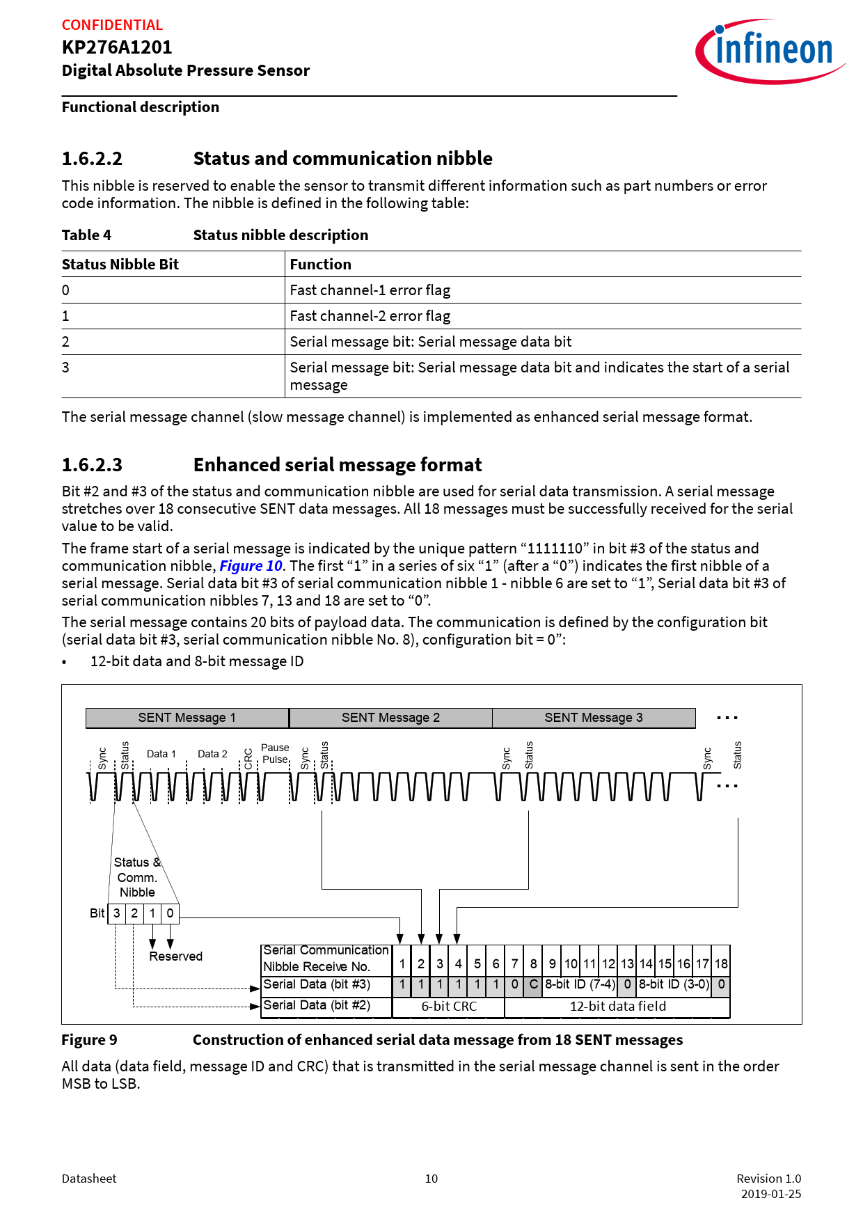 CONFIDENTIAL KP276A1201 Digital Absolute Pressure Sensor Functional description 1.6.2.2 Status and communication nibble
