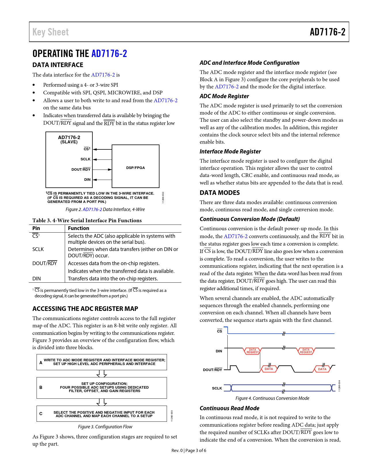 Key Sheet AD7176-2 OPERATING THE AD7176-2 DATA INTERFACE ADC and Interface Mode Configuration