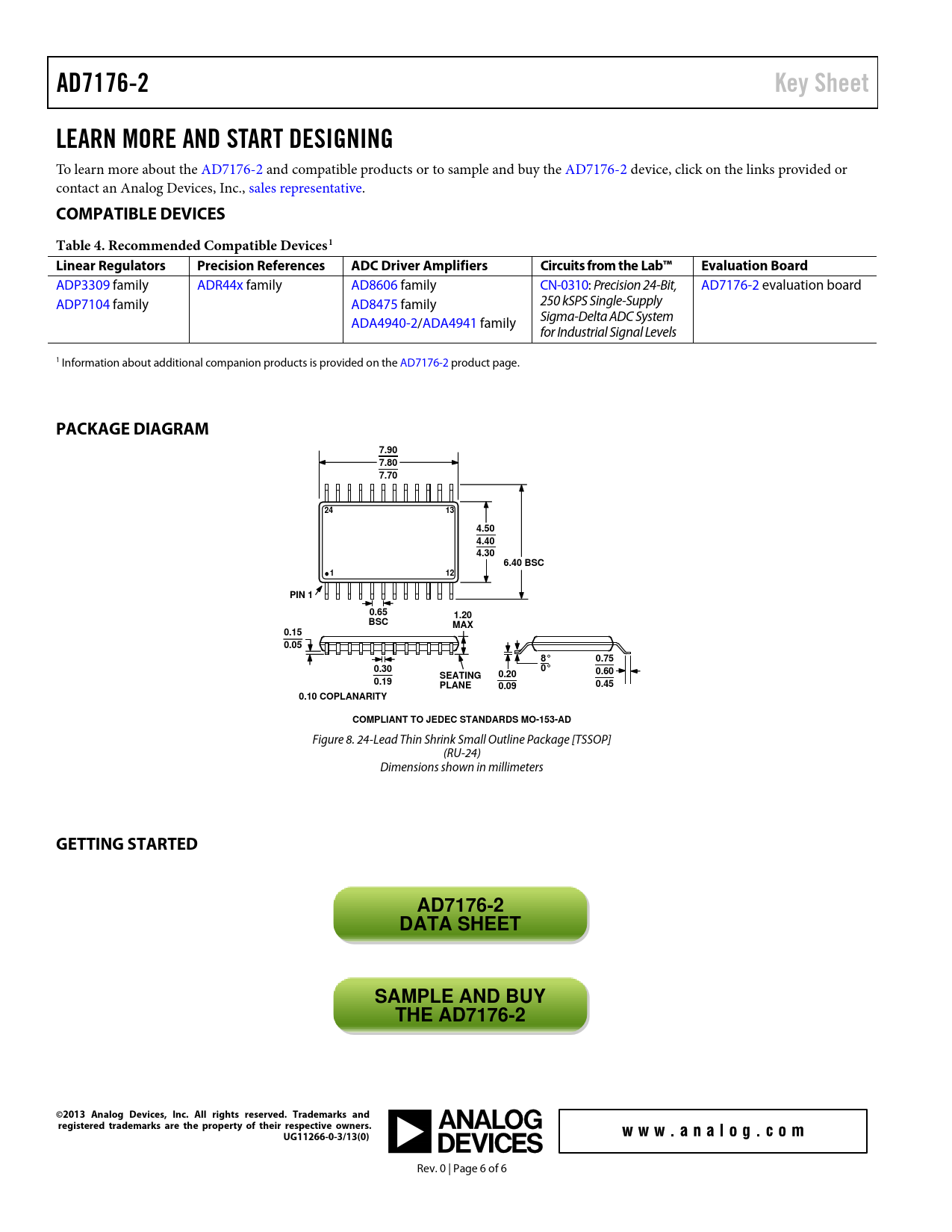 | Seiten / Seite | 6 / 6 — AD7176-2. Key Sheet. LEARN MORE AND START DESIGNING. COMPATIBLE DEVICES. … |