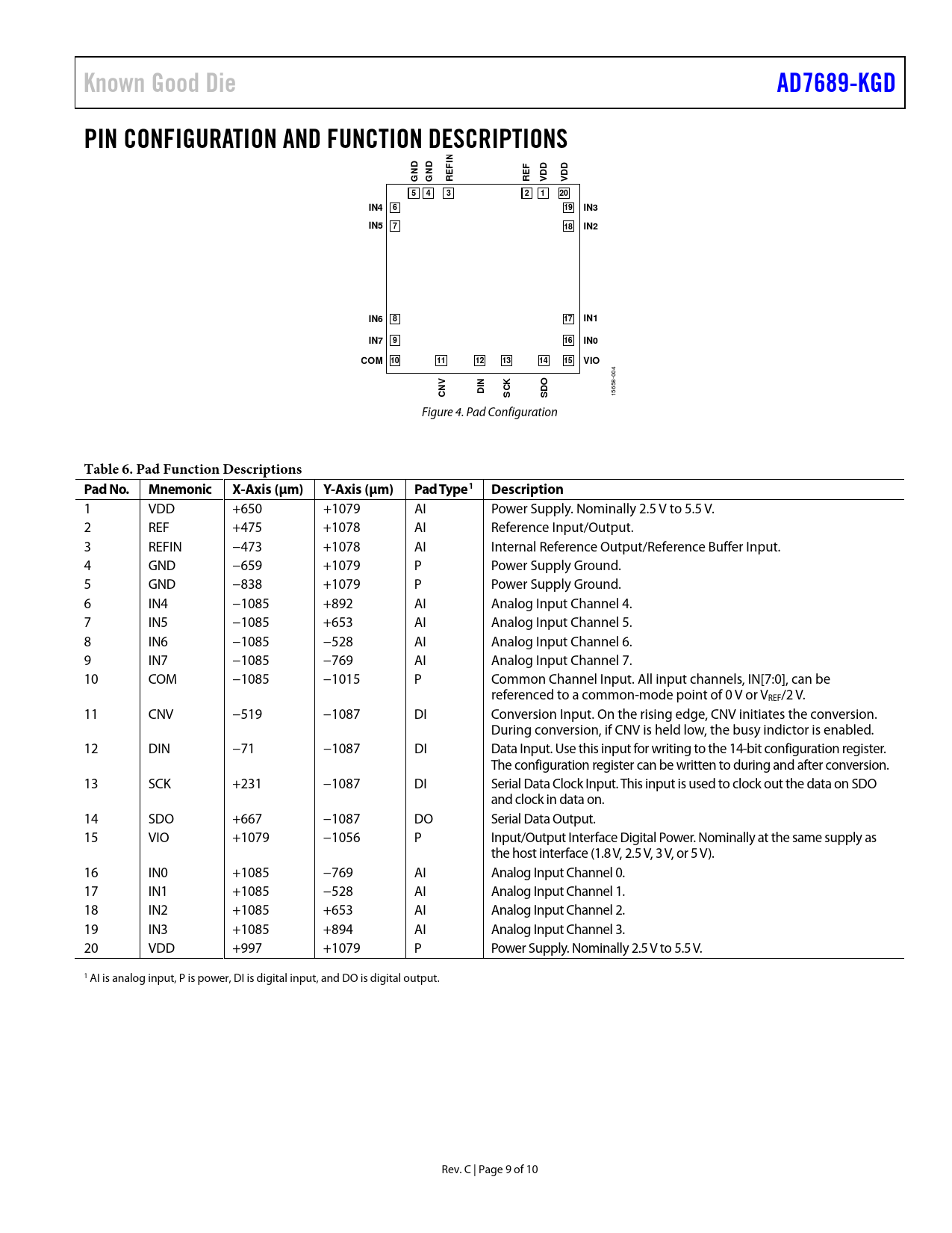 Seiten / Seite10 / 9 — Known Good Die. AD7689-KGD. PIN CONFIGURATION AND FUNCTION DESCRIPTIONS. …