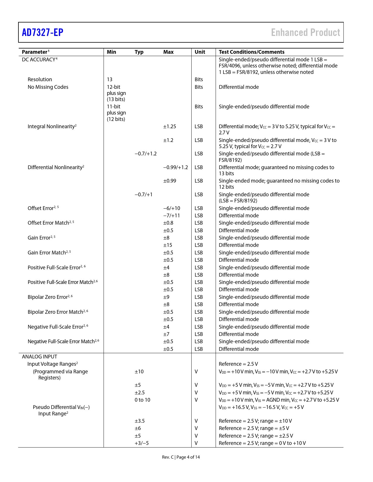 AD7327-EP Enhanced Product Parameter1 Min Typ Max Unit Test Conditions/Comments