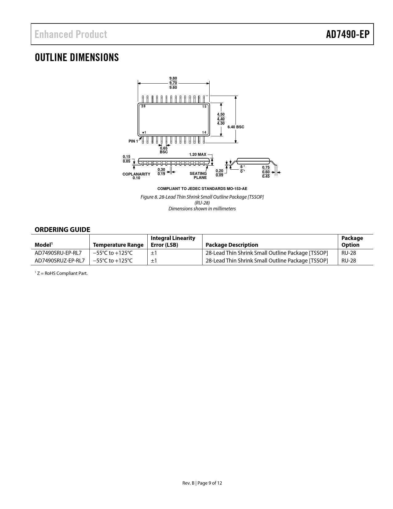 Enhanced Product. AD7490-EP. OUTLINE DIMENSIONS. 9.80 9.70 9.60. 2 8. 1 5. 4.50 4.40 4.30. 6.40 BSC. 1 4. PIN 1. 0.65. BSC. 1.20 MAX. 0.15 0.05